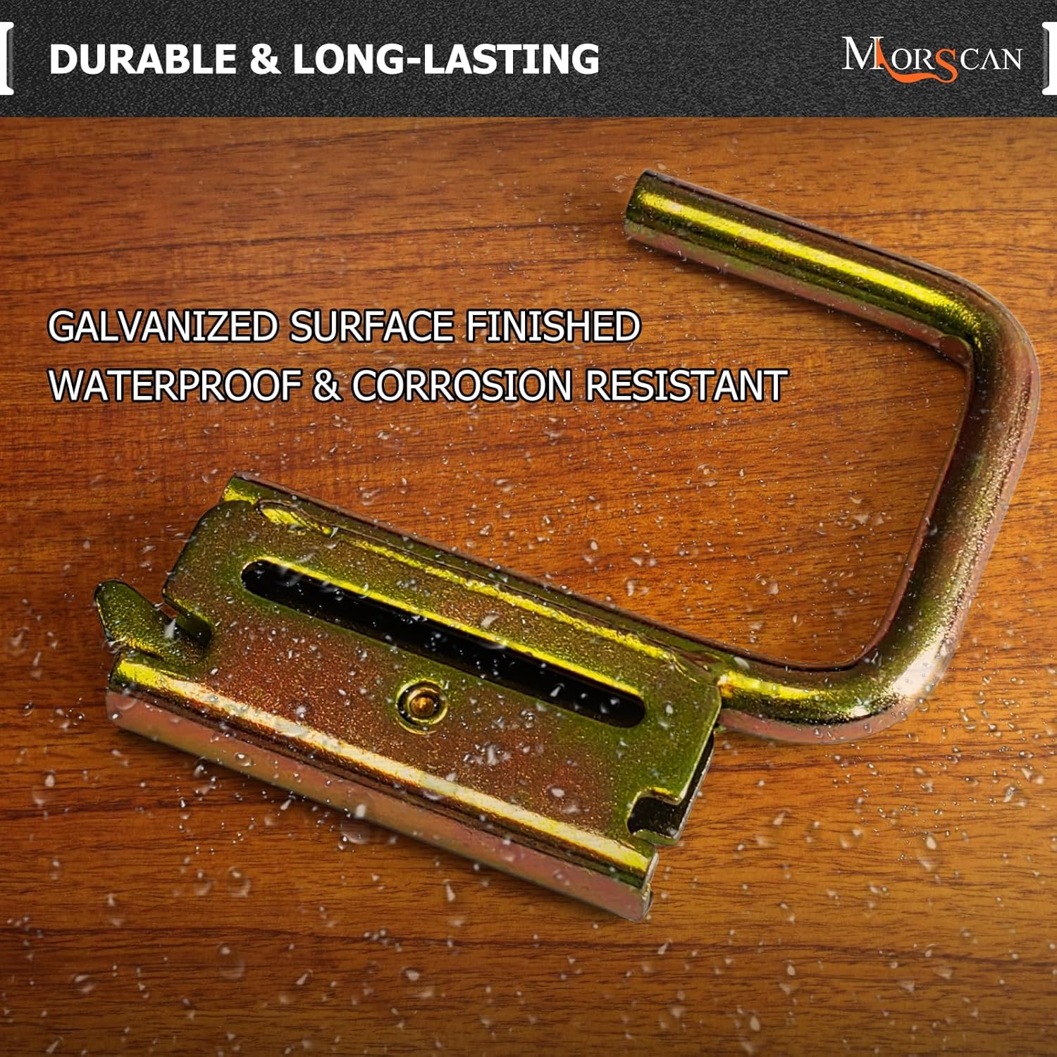 - HEAVY DUTY HOOKS - Strong hooks fit for all E-Track/X Track trailer tie-down rails or E port single slots. With 2" inner clearance, 400 pound working load limit, 1,200 pound break strength.