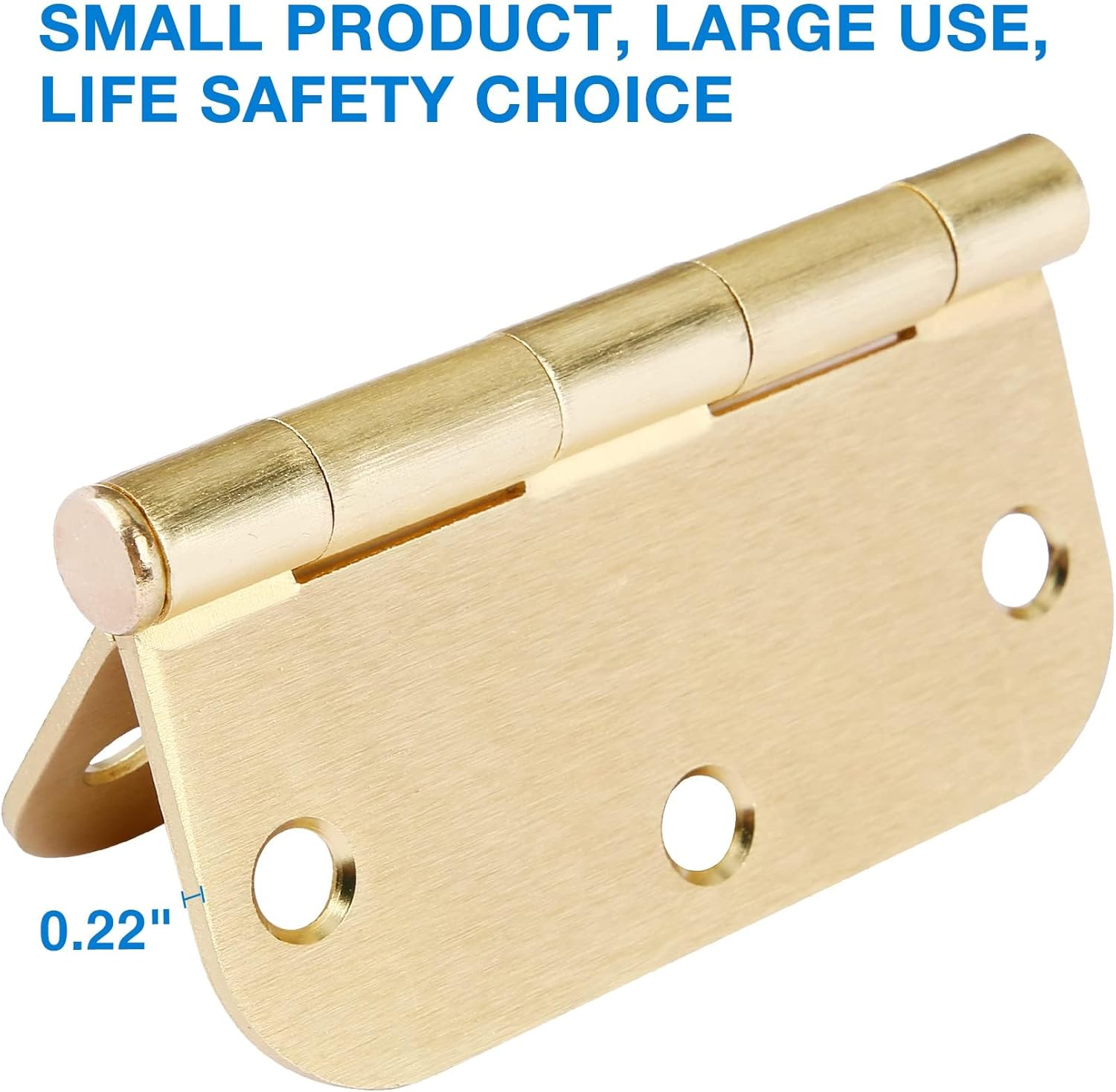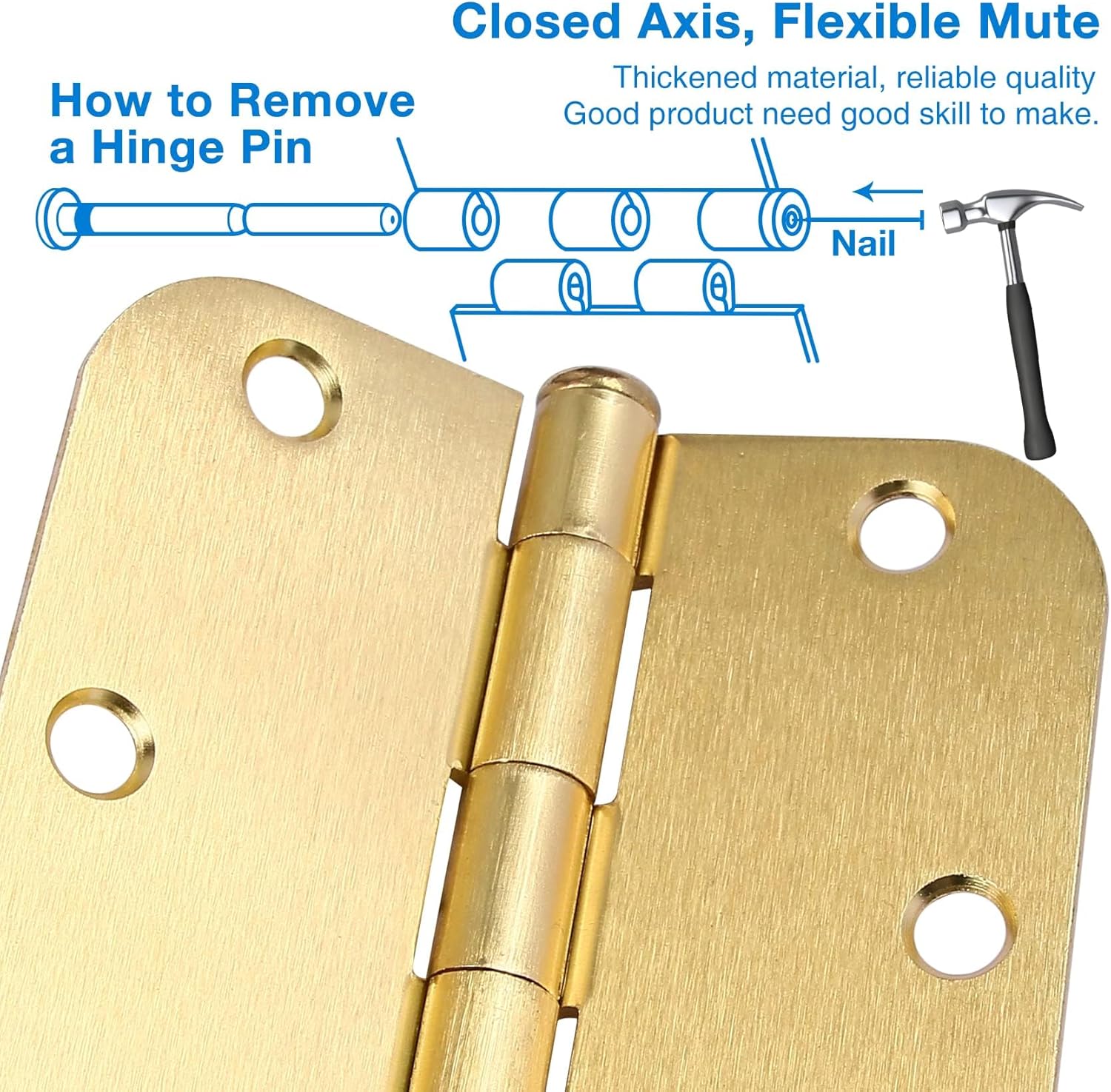 3 Pack Round Door Hinges 3-1/2" x 3.5 inch, 5/8 Radius, Brushed Brass 3 ½ Inch Satin Gold House Interior Hinge for Bed/Living/Guest/Pantry/Storage/Study/Work Room Doors Heavy Duty Iron Hardware Kit
