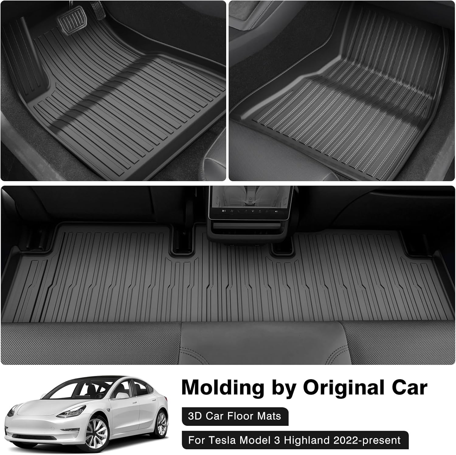 - Crafted for Model 3 Highland Exclusivity: Introducing premium floor mats, that seamlessly integrate with your 2024 2025 Tesla Model 3 Highland through precise 3D-scanned design, eliminating the need for trimming.