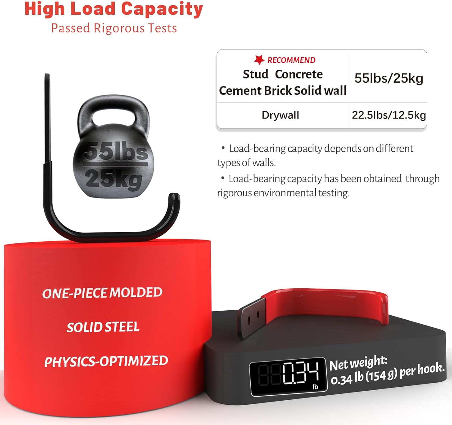 - PROVEN STRENGTH: Each heavy duty hook holds up to 55 lbs/25 kg. The load capacity data of the SunVFaFa Garage Hook series is rigorously validated