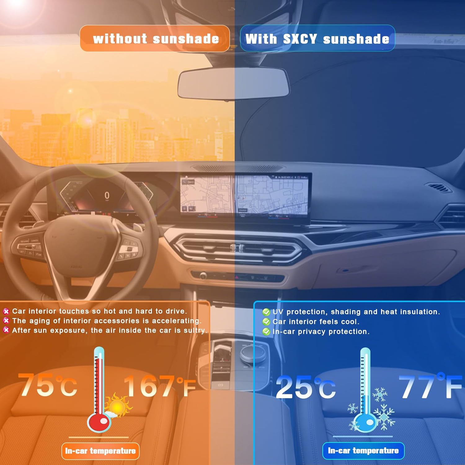 - 4.No matter what season you should need it: In summer, ultraviolet rays and heat light are very strong, sunshade for car windows keep your beloved car cool and in winter, when the sky is always clear, ultraviolet rays (a very powerful Harmful light) also exist. You need this Sun Visor for sun protection and UV protection at all times.