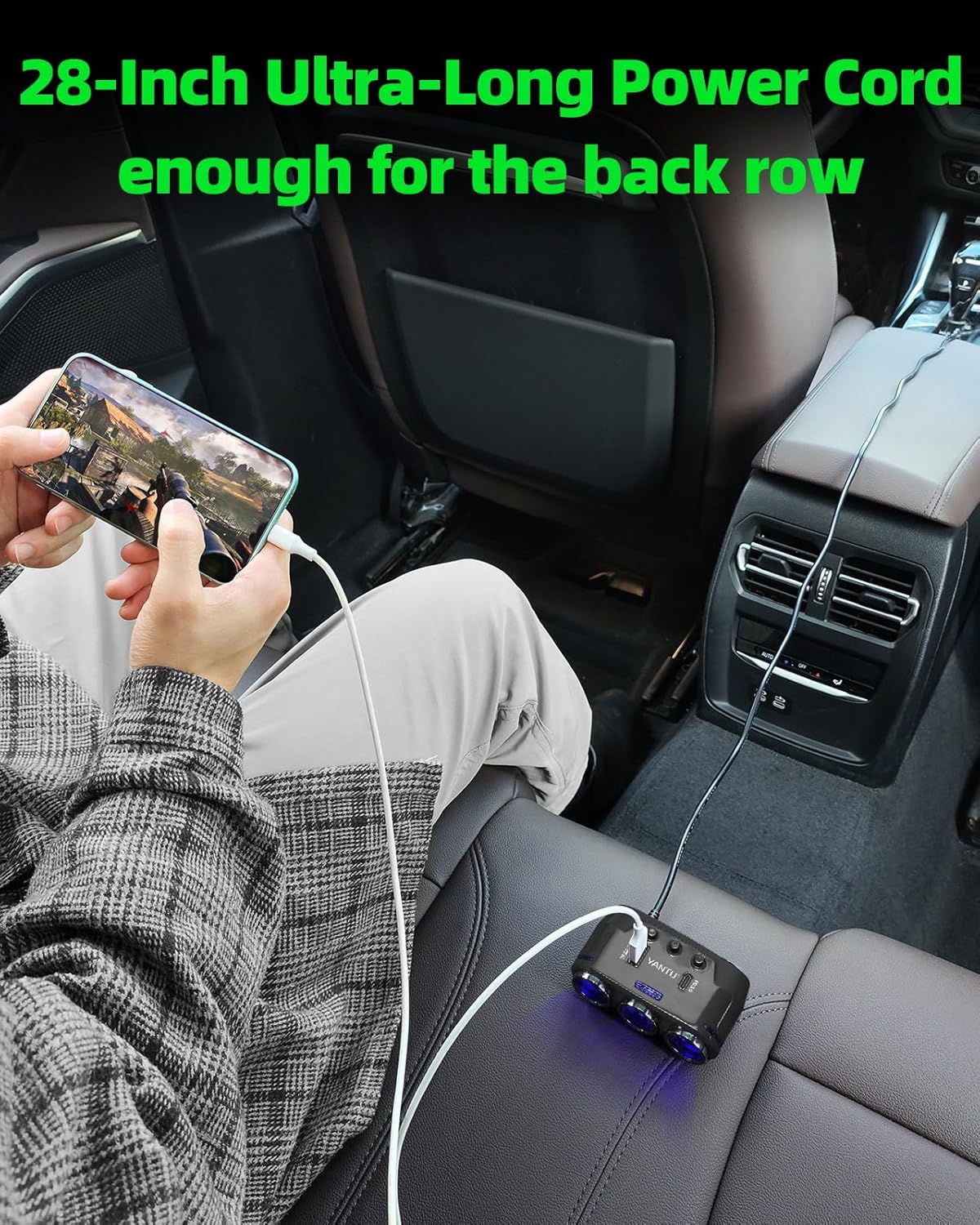 - 【3-Socket Car Charger & QC3.0+PD3.0 Ports with Cigarette Lighter Adapter】 This versatile Cigarette Lighter Adapter triples as a Cigarette Lighter Splitter and USB car charger, offering three sockets and a QC3.0+PD3.0 port. This Car Charger Adapter supports simultaneous charging for GPS, dash cams, and other devices, compatible with both 12V and 24V vehicles. Ensure total power does not exceed 140W to prevent overload, making it a must-have for any vehicle.