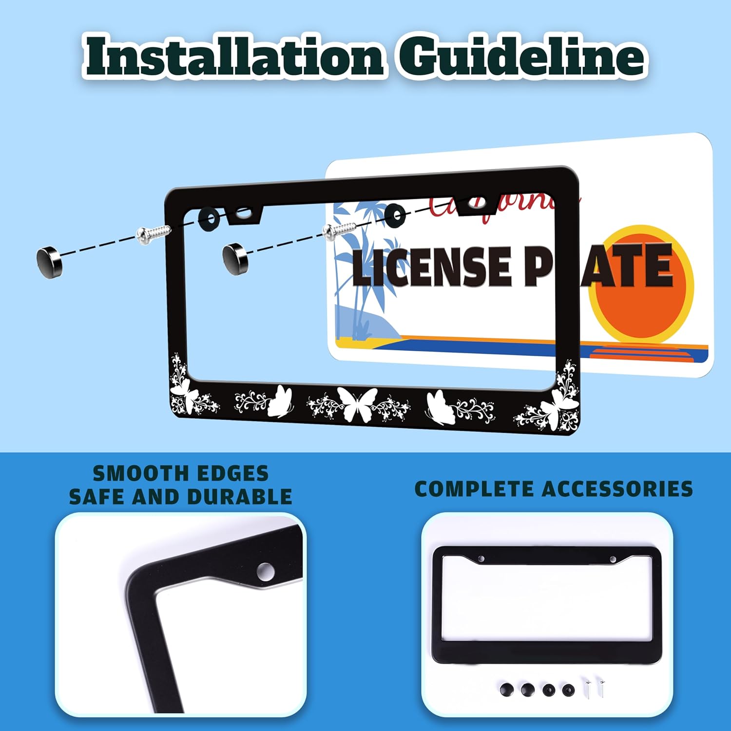 Black White Butterfly License Plate Frame Funny Butterflies License Plate Holder for Front or Rear Car Tags Reusable Durable Stainless Steel Car Decoration with Screws 6.3 X 12.2 Inch for Men Women