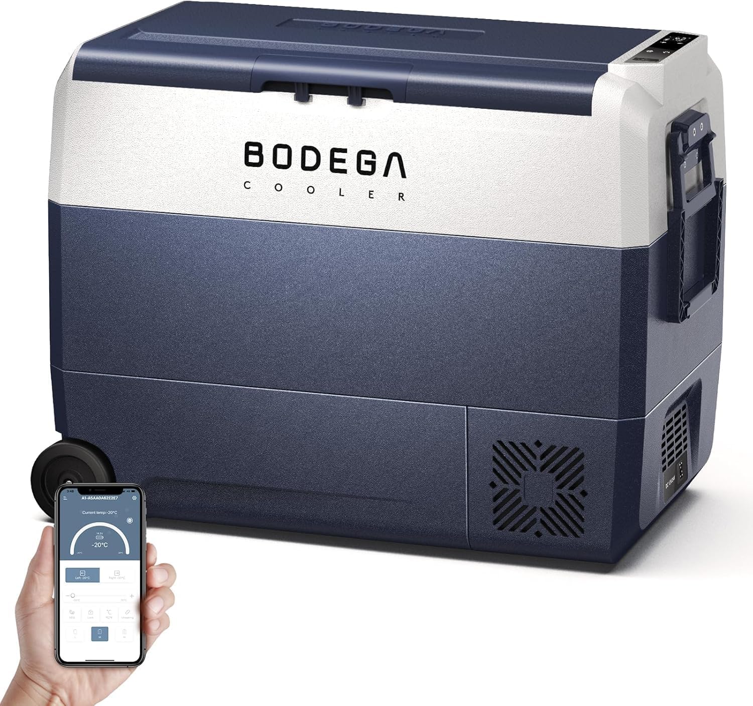 - Large Zone And App Control Car Fridge:BODEGACOOLER 12 Volt refrigerator is equipped with dual zone,the double zones can be temperature independently adjusted. 60L(64 Quart).This powerful 12v fridge can hold 75cans cola or 40 bottles water or 21 bottles red wine.BODEGACOOLER car refrigerator with function like App control.