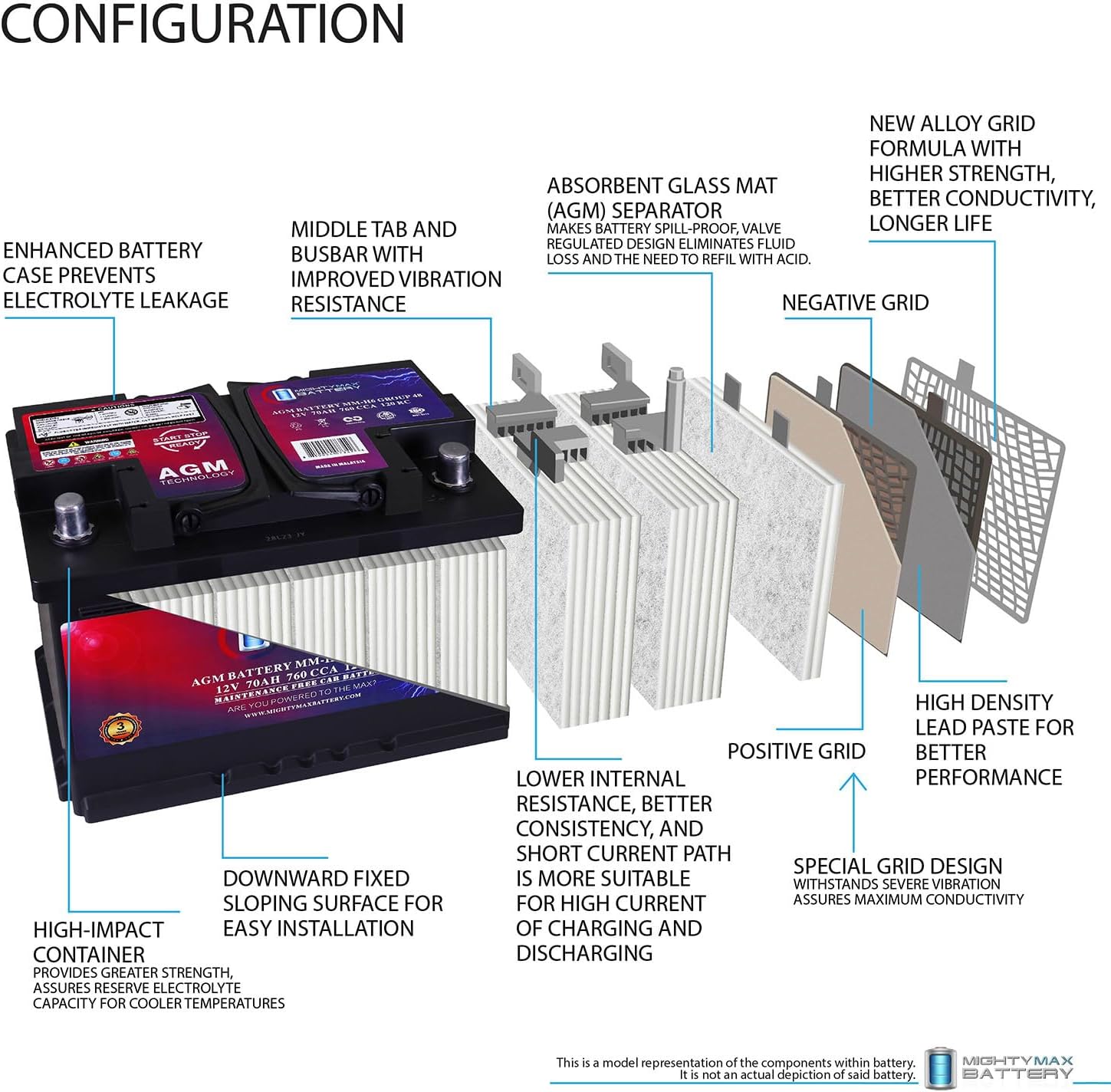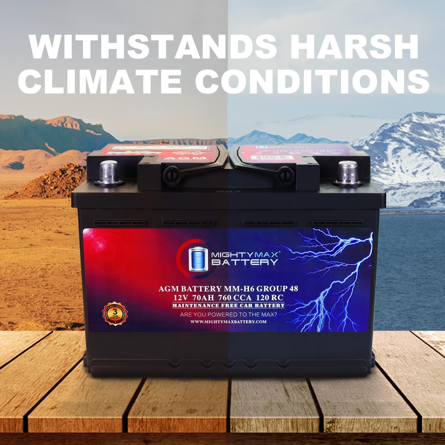 Mighty Max Battery MM-H6 Start and Stop Car BCI Group Size 48 12V 70 AH, 120RC, 760 CCA Rechargeable AGM Car Battery