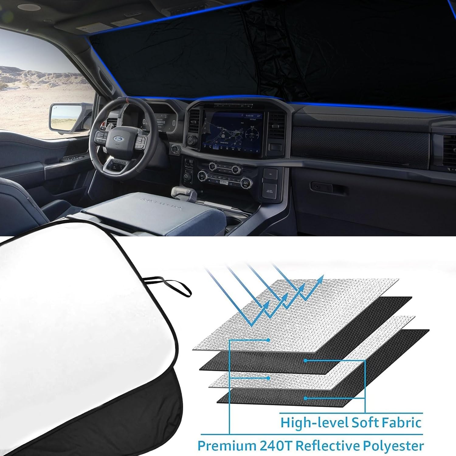 2025 Upgrade Front Windshield Sunshade fit for Ford F150 2021-2025 Foldable Car Shade 240T Reflective Polyester Ford F-150 Lariat King Ranch Platinum XL XLT Limited Raptor Accessories |Keep Cool|