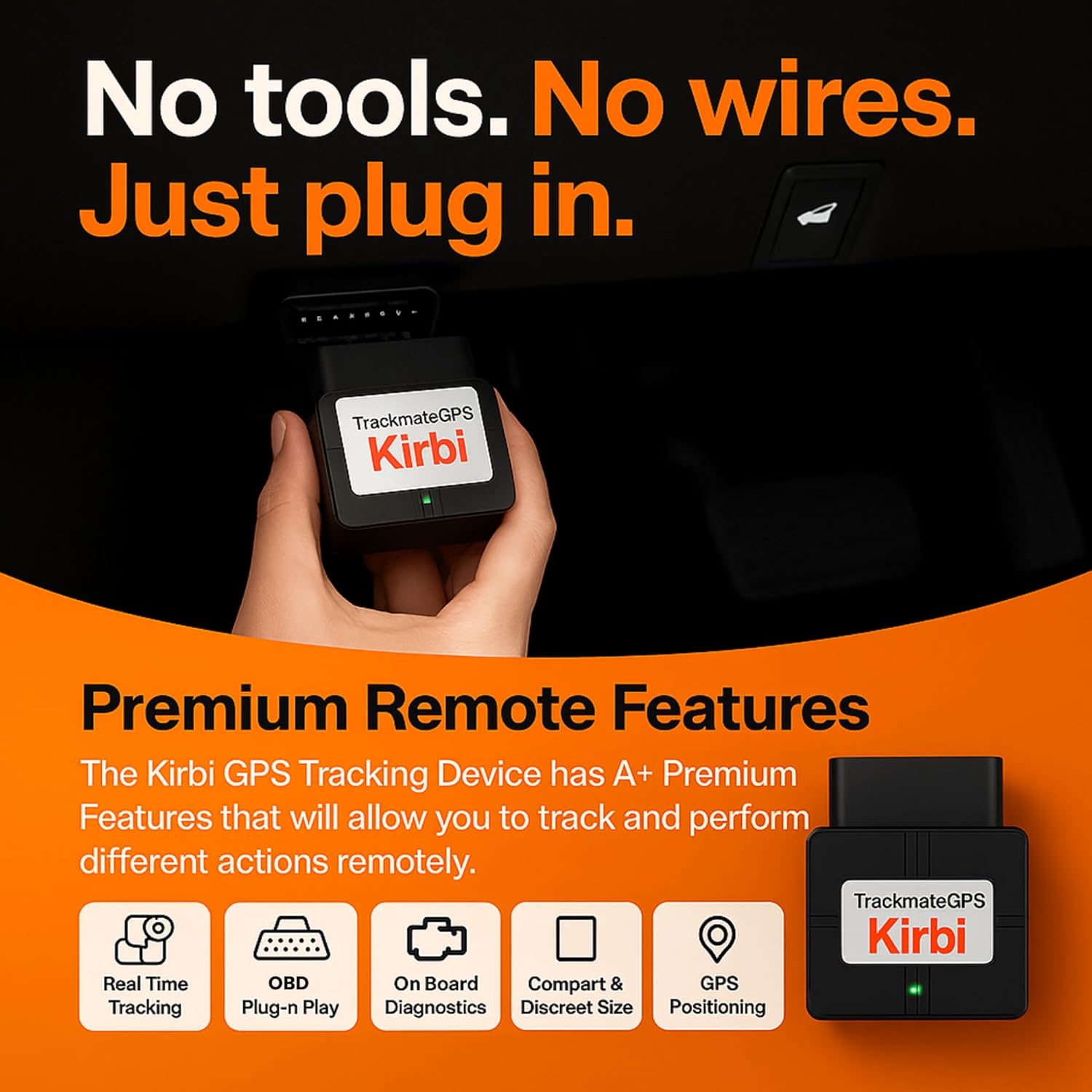 - UNLOCK INSIGHTFUL DATA: The Kirbi car tracker provides you with detailed reports that offer a closer look at your vehicle's performance and usage history. These tracking devices let you gain valuable insights into factors like driving patterns, fuel efficiency, and location history.