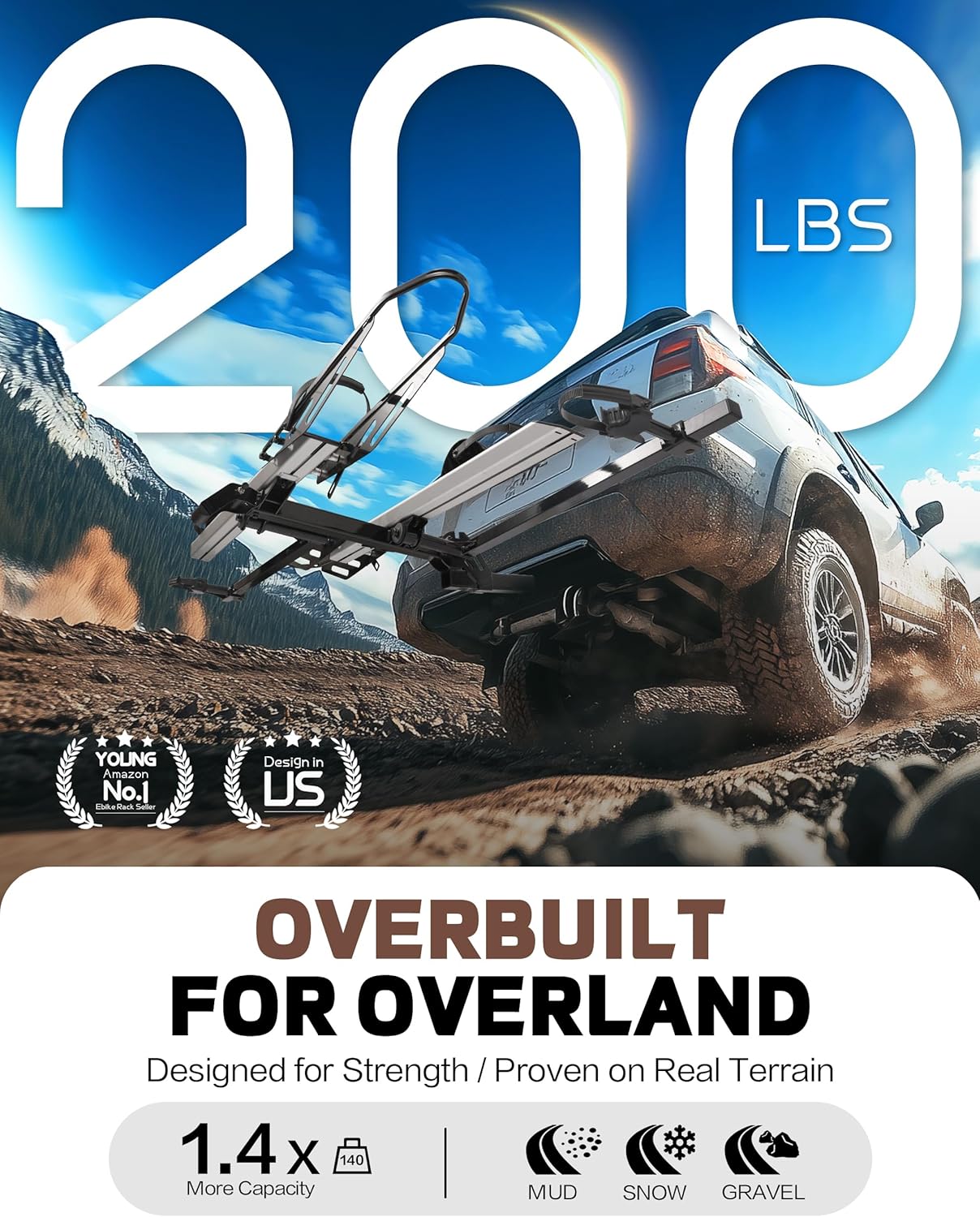 - 200 LB TOTAL CAPACITY: Built for durability and strength, this bike rack boasts an impressive 200lbs capacity, securely accommodating heavier electric bikes or multiple conventional bicycles with ease. Trust in its robust construction for reliable, strain-free transportation.