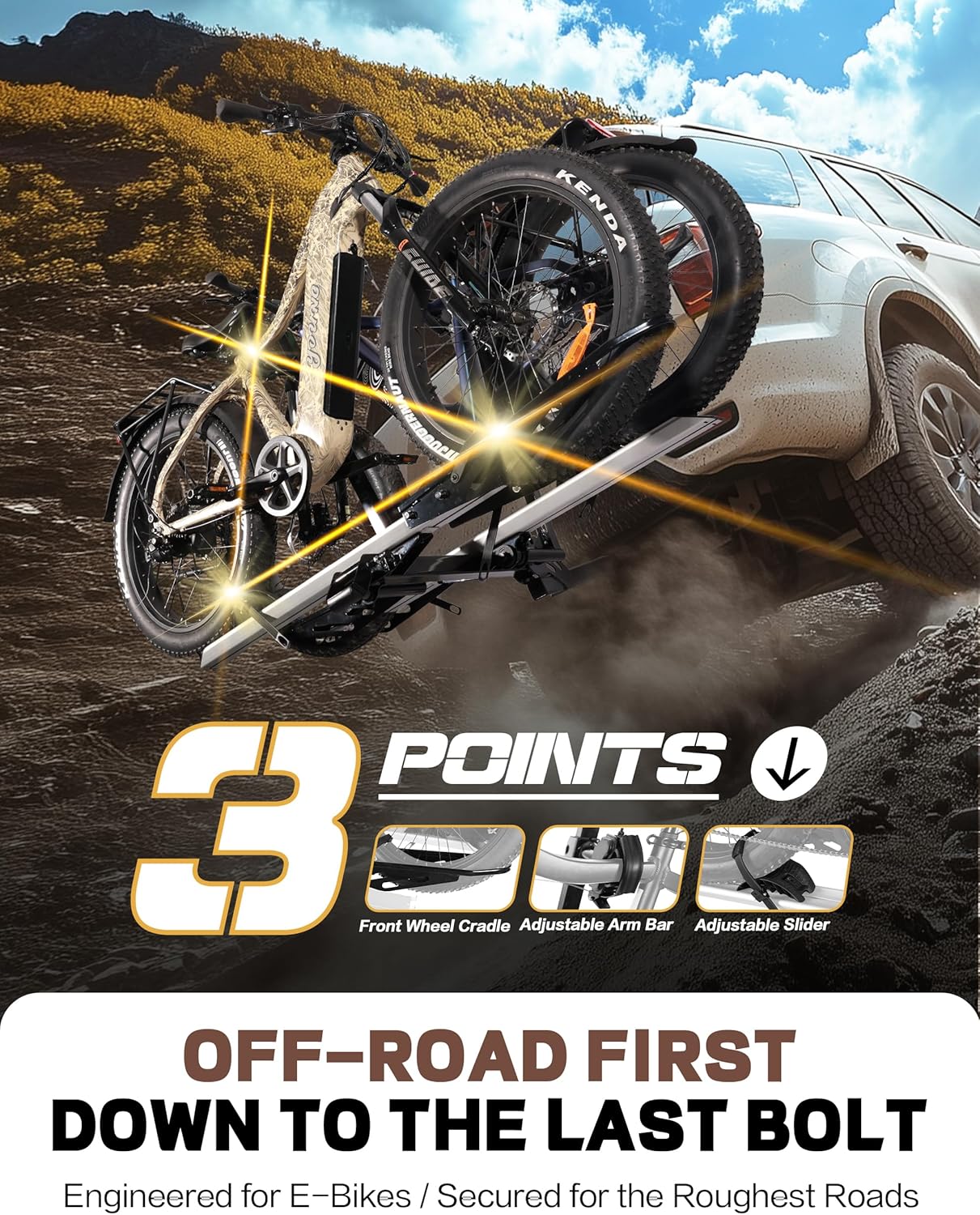 200 LBS. Hitch Mount Ebike Rack for Fat Tire Electric Bikes, Mountain Bicycles, fits Cars, SUVs, RVs, Trucks, Trailers with 2 Inch Receiver