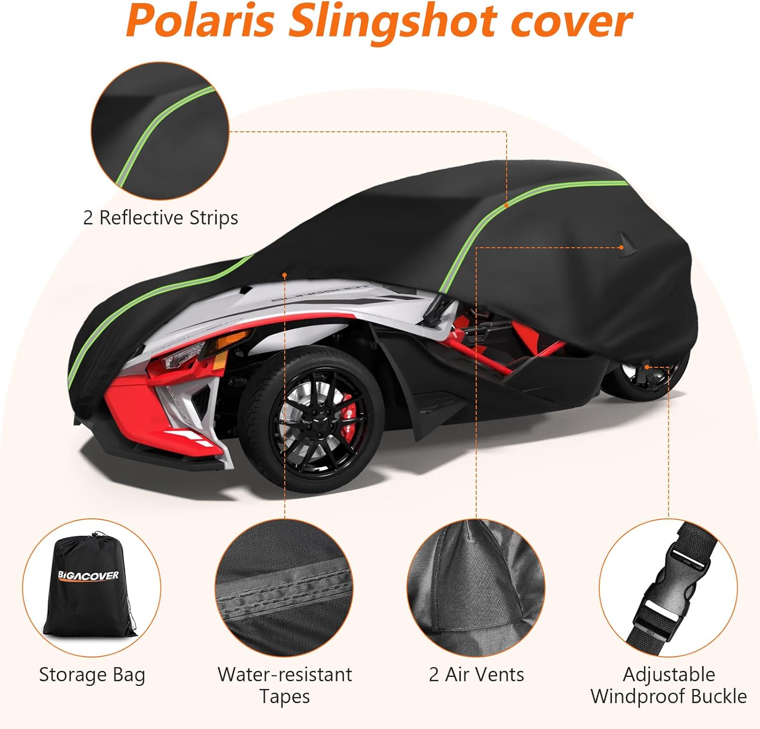 - Cover for Polaris Slingshot: Waterproof All Weather Full Cover perfectly fits for 2019-2023 Polaris Slingshot Roush Edition/S/SL/SL LE/SLR/SL Icon Series/SLR Icon Series/R/R LE model. Specifically designed for Slingshots with added rooftops or other exterior accessories, the upgraded Slingshot cover is tailored to fit perfectly.