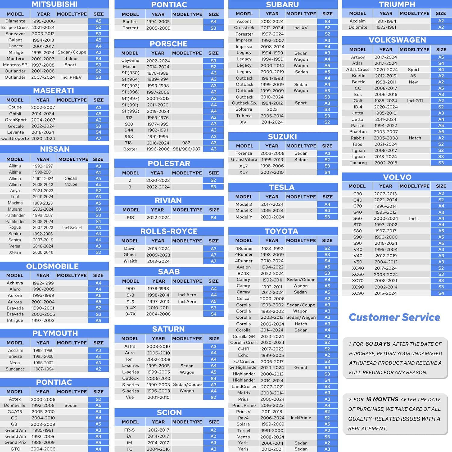 - 【How to Choose Size】ATHUPEAD SUV waterproof car cover provides an accurate size chart (Figure 4-6), find your brand/model and year of manufacture in the size chart to match the correct size.