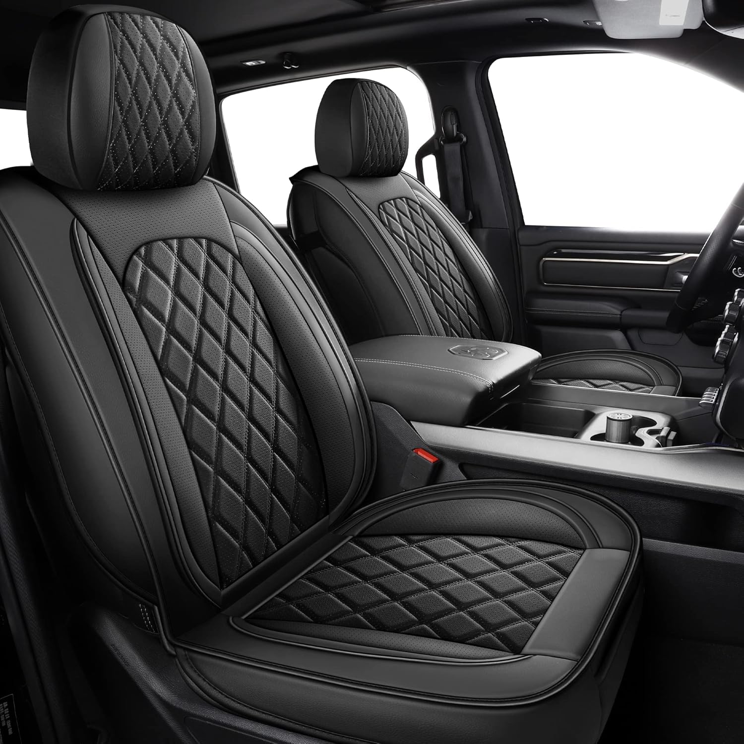 - Perfect Fit: 2PCS Front Seat Covers For Ram Waterproof Leather Custom Fit 2009-2025 Ram 1500 2500 3500 Crew Quad Regular Cab Pickup