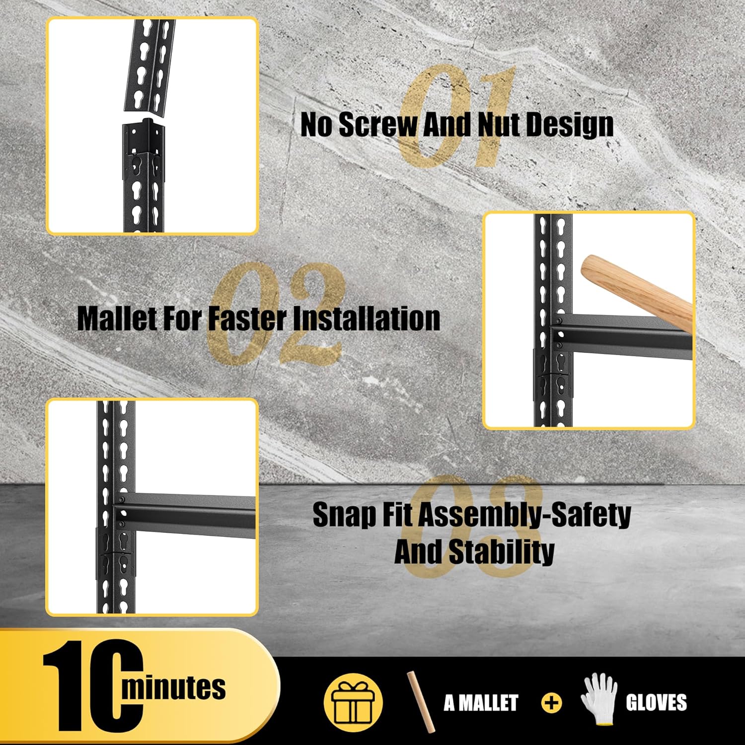 - 【Safe&Rust-Proof】The entire all-metal shelves are locked by pins to ensure crossbeams stay seated and 4 support straps to prevent twisting or spreading. The powder-coated finish on the steel uprights, support straps, and crossbeams, easy to clean, moisture-proof and rust-proof.