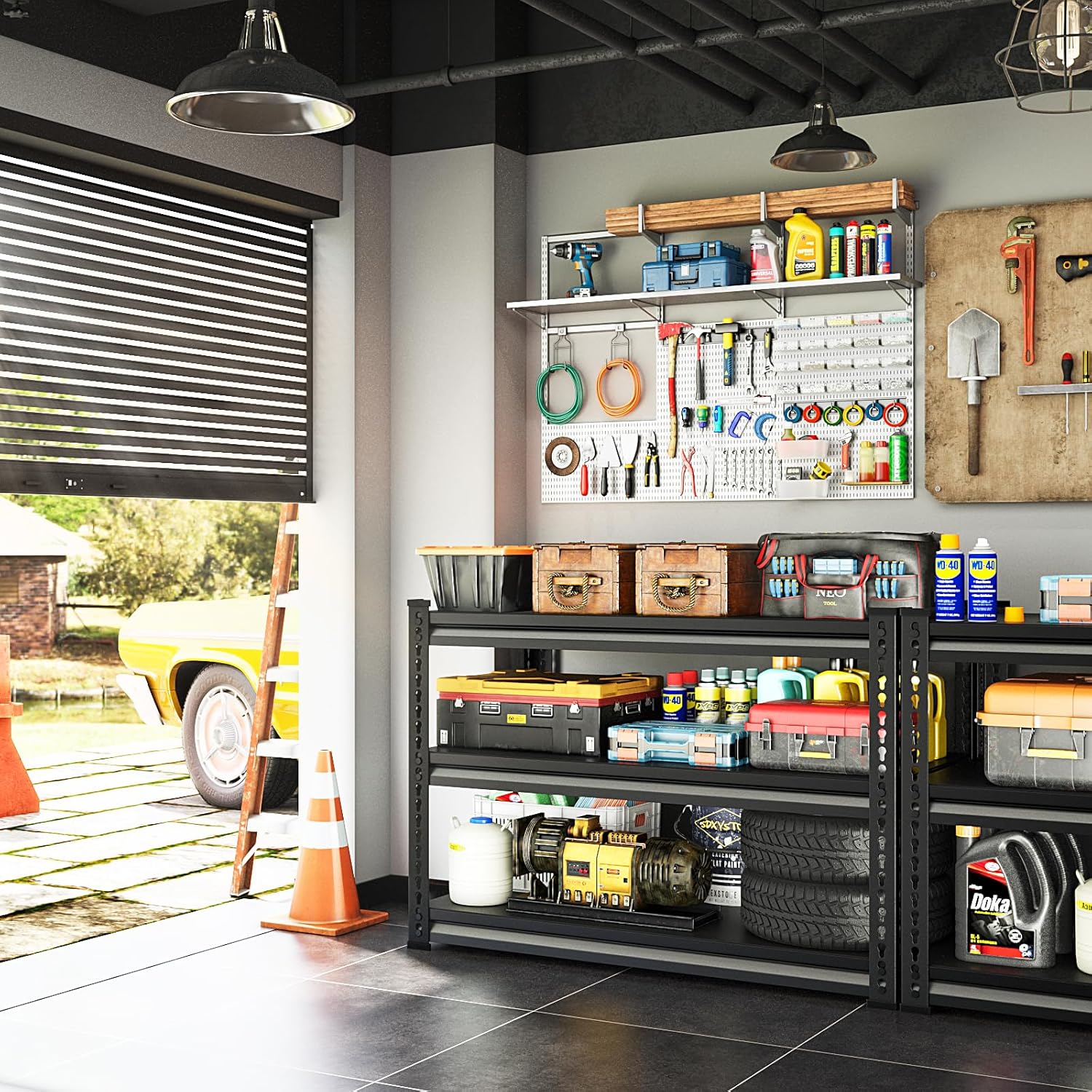 48" W Garage Shelving Heavy Duty, 1500LBS Loads Shelving Units and Storage Racks, 3-Tier Metal Garage Storage Shelves, Industrial Utility Shelf Heavy Duty,48" Wx16 Dx39 H, Black