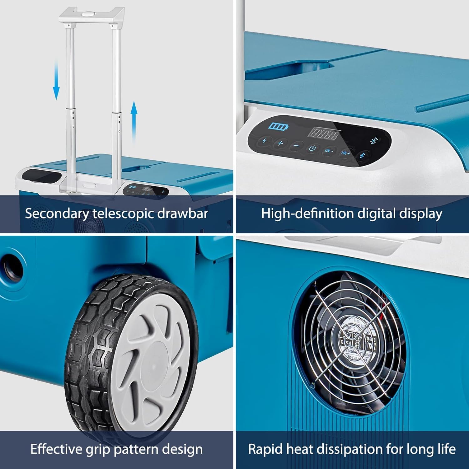 - 🎶【Humanized Handle Design & Warranty】 Portable 12v fridge freezer equipped with retractable handle and flexible wheels, making it effortless to move,climbing or hiking,protect lumbar spine. The non-slip base that helps to reduce lateral displacement and prevent shaking during driving. Electric cooler with 5 Years Life span on the compressor and 1 year warranty on all other parts, If you have any questions please REACH OUT TO US before returing it, as we provide hassle-free after-sale service.