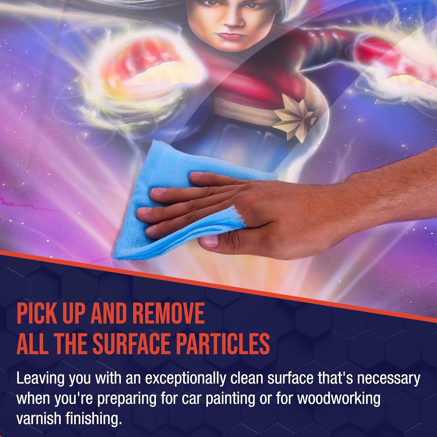 TCP Global - Pure Blue Superior Tack Cloths - Tack Rags (Box of 6) - Automotive Car Painters Professional Grade - Removes Dust, Sanding Particles, Cleans Surfaces - Wax and Silicone Free, Anti-Static