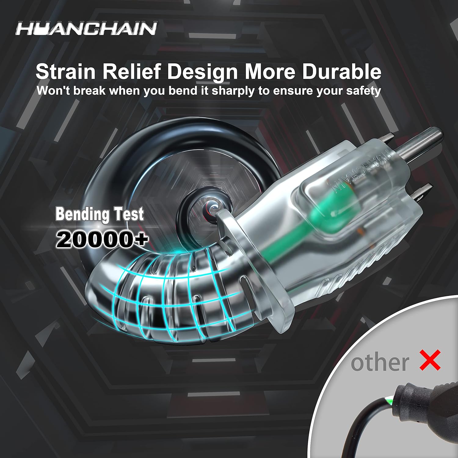 - High Flexible & Easy to Use: HUANCHAIN high flexible vinyl extension cable cords have better bending resistance and prevent them from breaking during long-term movement, bending, and pulling; Super soft feel, easy to unfold when used; Each outdoor extension cord has storage straps and is easy to repack and recycle after use; Open the storage straps when power is on and unfold the black outdoor extension cord 200 ft more safe
