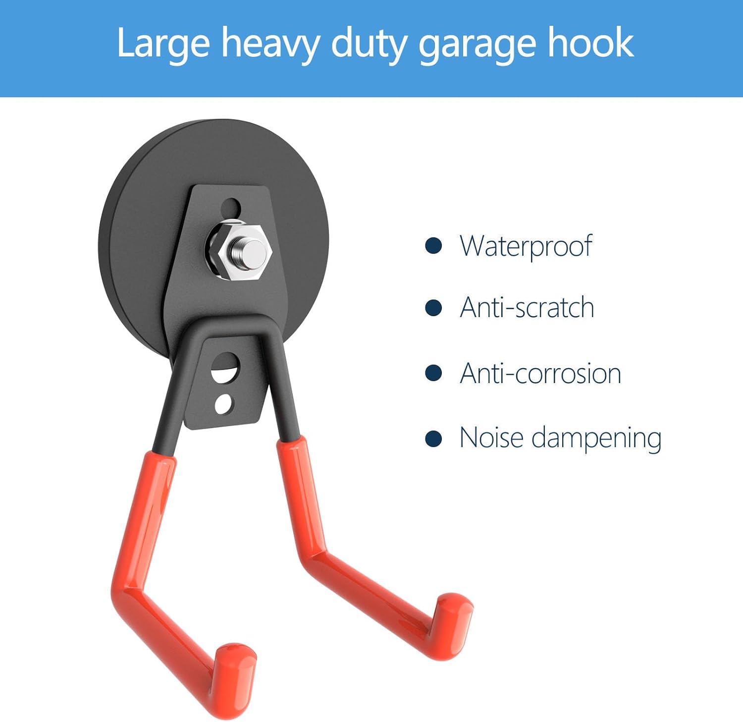 Magnetic Garage Hook, Heavy Duty Garage Storage Magnetic Hooks Steel Tool Hangers for Garage Wall Utility Magnet Hooks and Hangers Indoor & Outdoor Hanging Garden Tools (2 Pack)