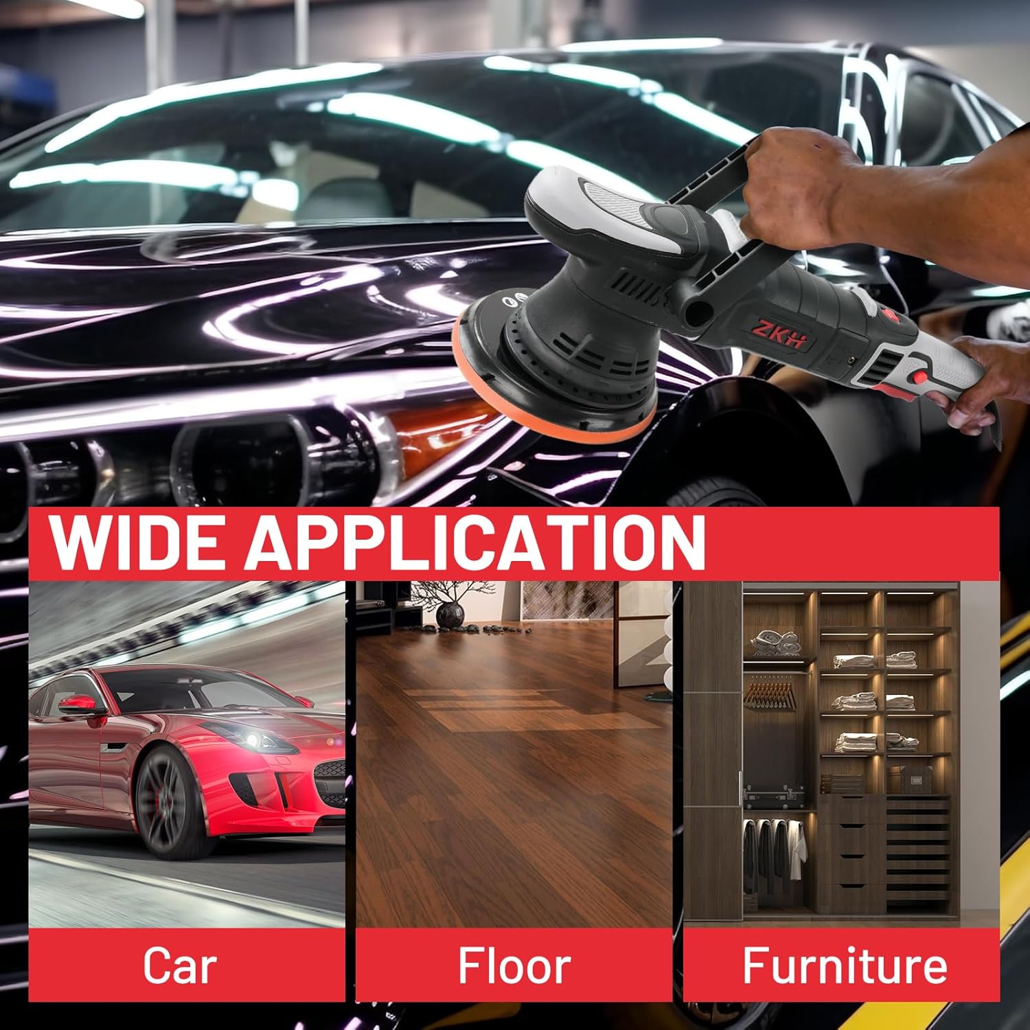- CONSTANT POWER & SPEED TECHNOLOGY: ZKH polisher for car detailing with constant power and speed technology ensures smooth, stagnation-free polishing with consistent results even on curved panels and under pressure