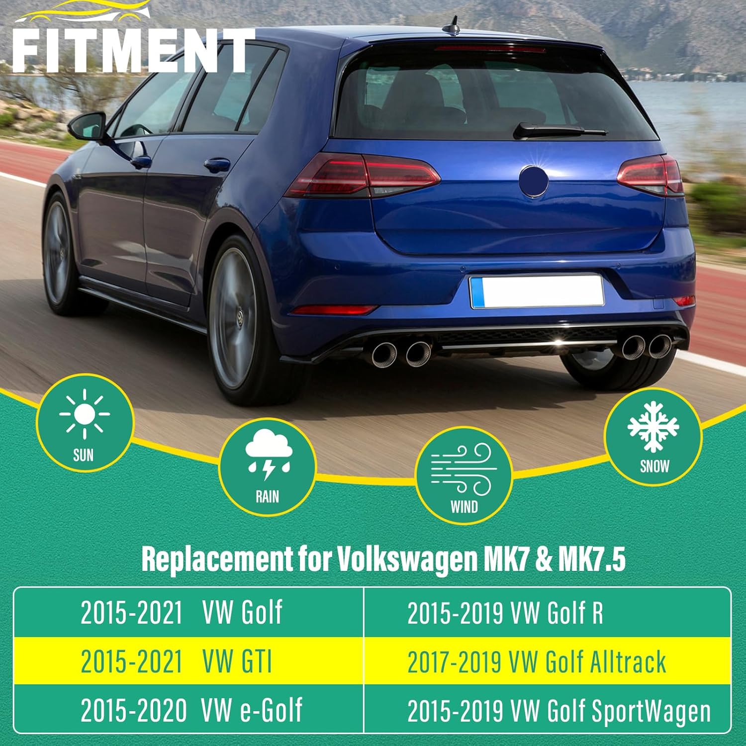 - [FITMENT2]: Replacement for 2015 2016 2017 2018 2019 2020 VW MK 7 7.5 Volkswagen e-Golf Golf R 26inch + 18inch front with 11inch rear windshield wiper blades.
