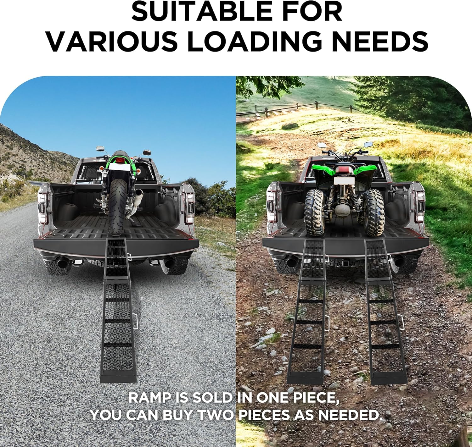 - STRONG LOADING CAPACITY: With a 800 LBS loading capacity, this ramp offers a sturdy support for your vehicles, ensuring safe loading and unloading. You can even ride onto the truck bed. (Safety First!)