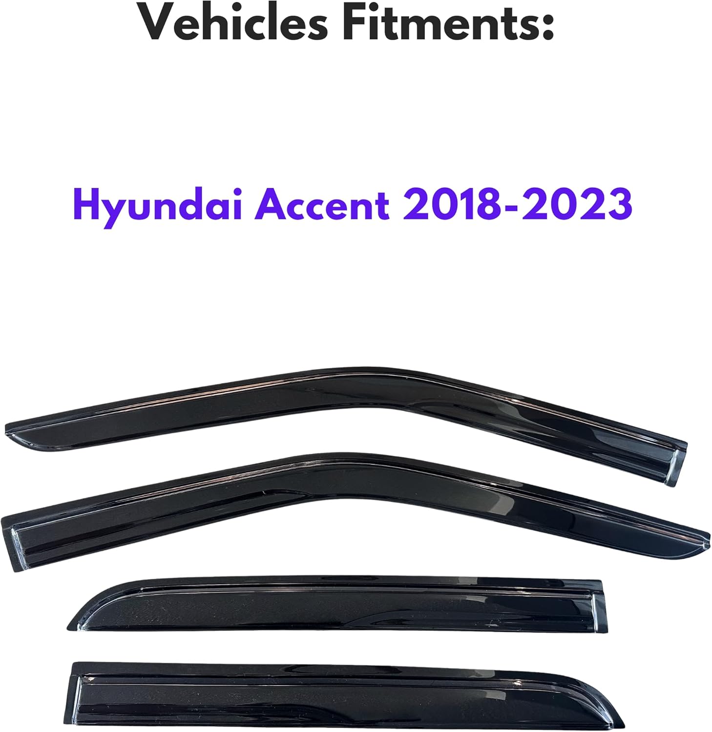 - 【Perfect Fit】KPY window visors rain guards vent deflectors compatible with Hyundai Accent 2018 2019 2020 2021 2022 2023 (Mugen Style)