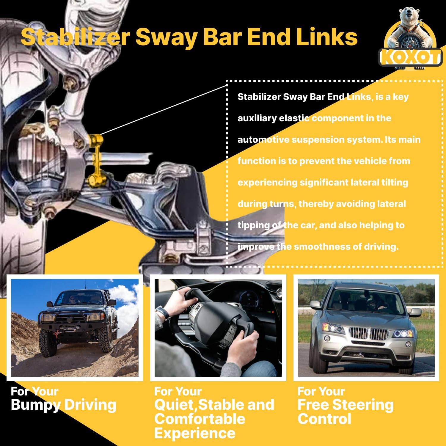 - 【Smooth and Safe】 Replacing the stabilizer bar links reduces vibration while driving and better anti-roll control, making the vehicle easier to steer for better control and safer driving and protecting the tires.