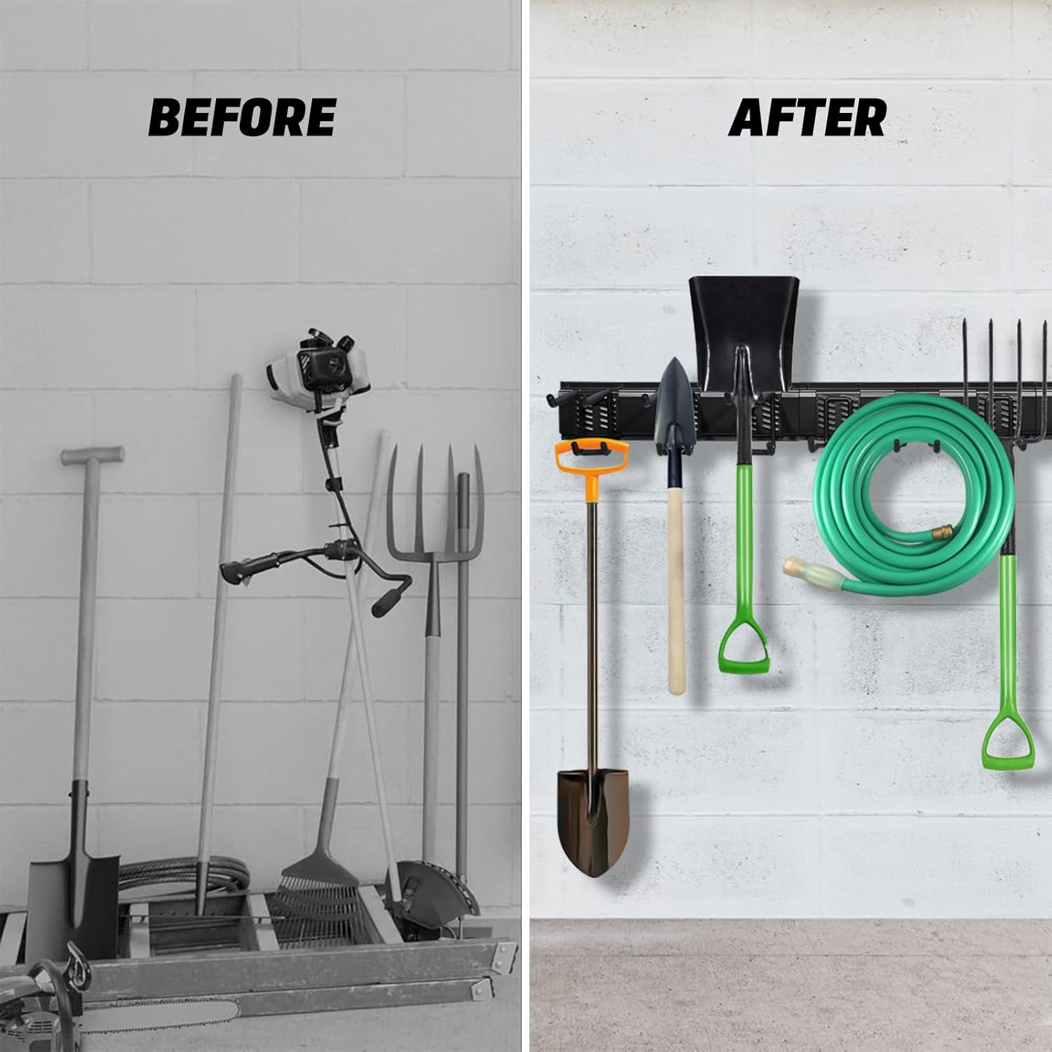AIRTOON Garage Tool Organizer, 48 Inch Garage Organizer Wall Mounted Storage System with 9 Hooks, Max Load 500lbs Garage Storage for Garden Tools, Shovels, Trimmers, Hoses