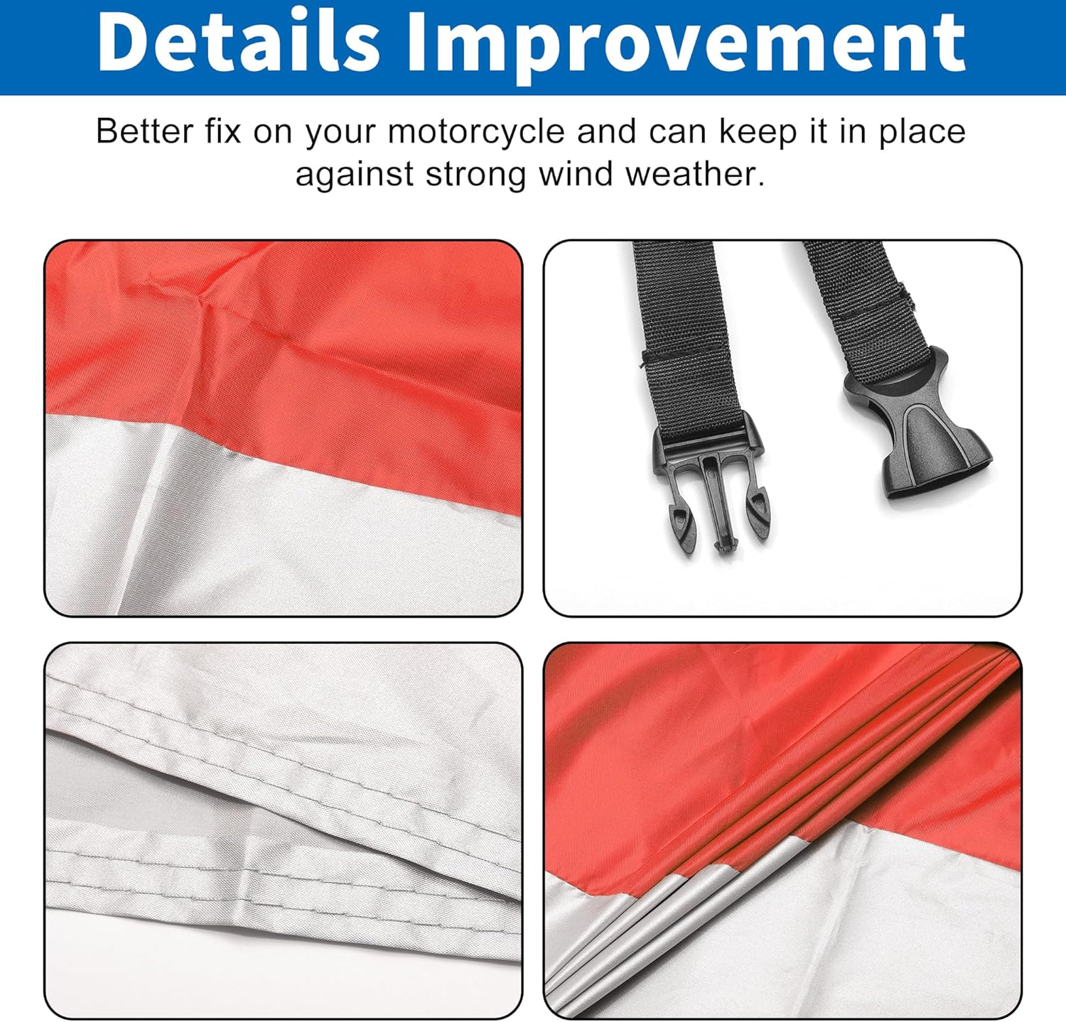 X AUTOHAUX Motorcycle Cover for Harley Davidson for Honda for Suzuki All Season Waterproof Sun Outdoor Protection Motorbike Cover Fits Up to 96.46'' Motorcycles Cover XL Red Silver Tone