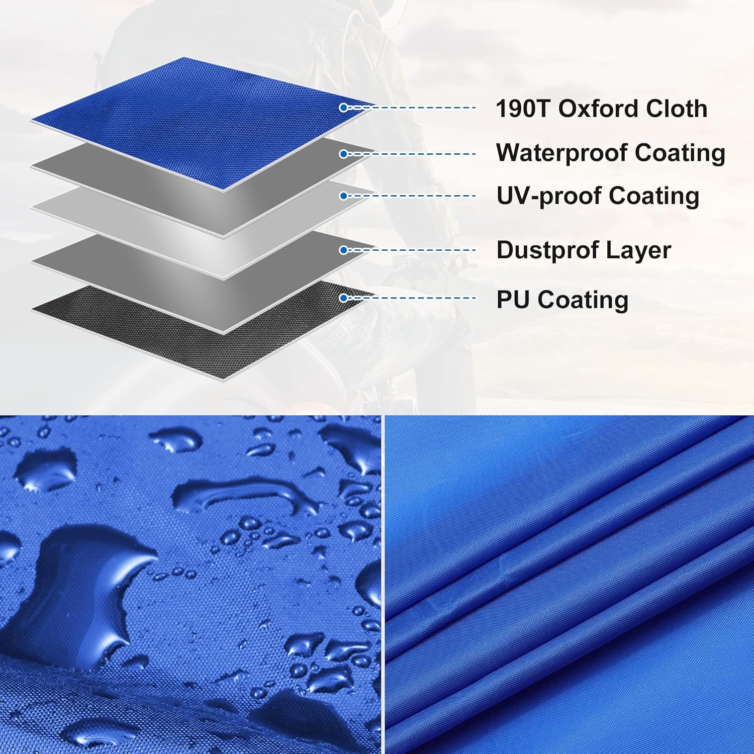 X AUTOHAUX Motorcycle Cover for Harley Davidson for Honda for Suzuki All Season Waterproof Sun Outdoor Protection Motorbike Cover Fits Up to 116.14'' Motorcycles Cover XXXL Blue Silver Tone