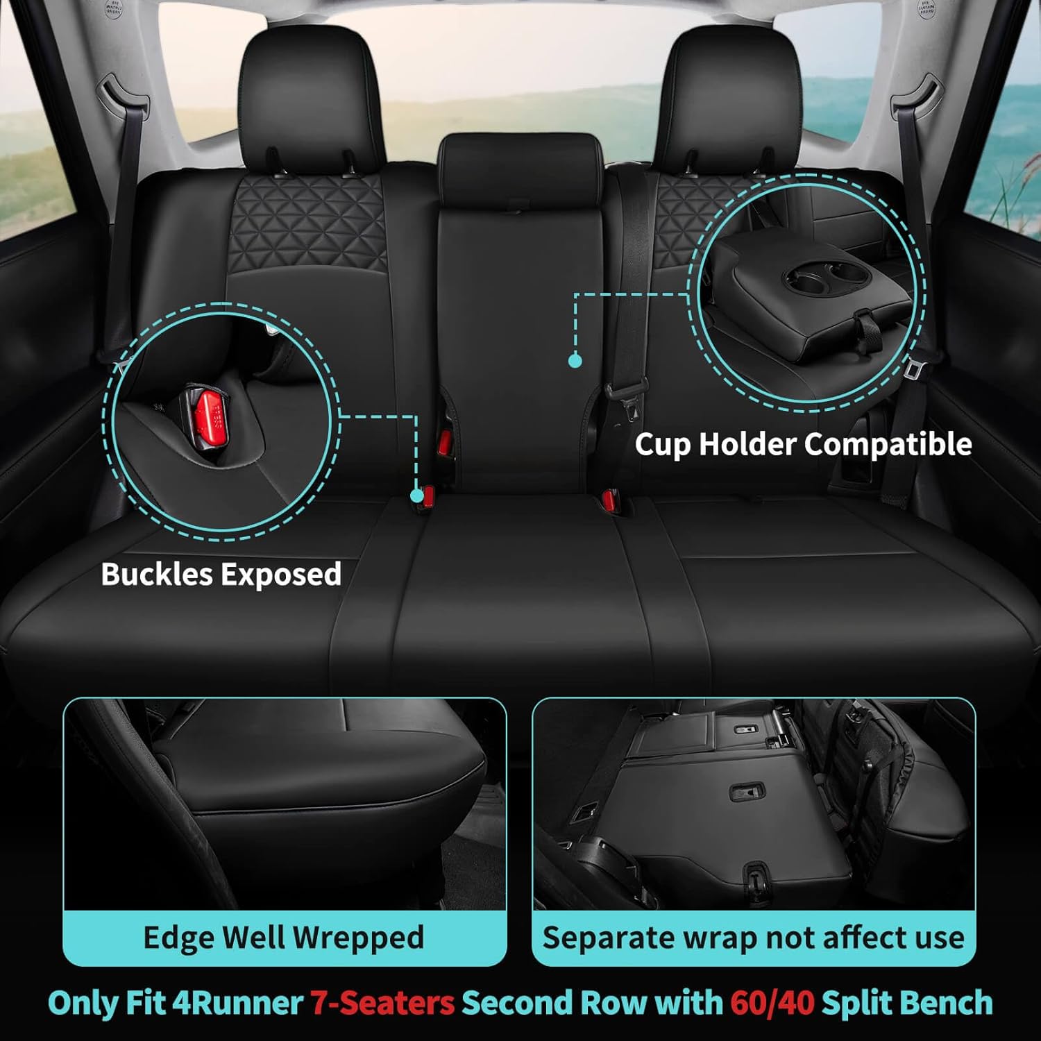 - Compatible with 7 Seats & 3 Rows - Car seat covers are tailored to fit 7-seat and 3-row versions, with a 40/60 split for 2nd row. Fit for 7-seat 4Runner models from 2011 to 2024, and are not compatible with the 5-seater and 2-row versions