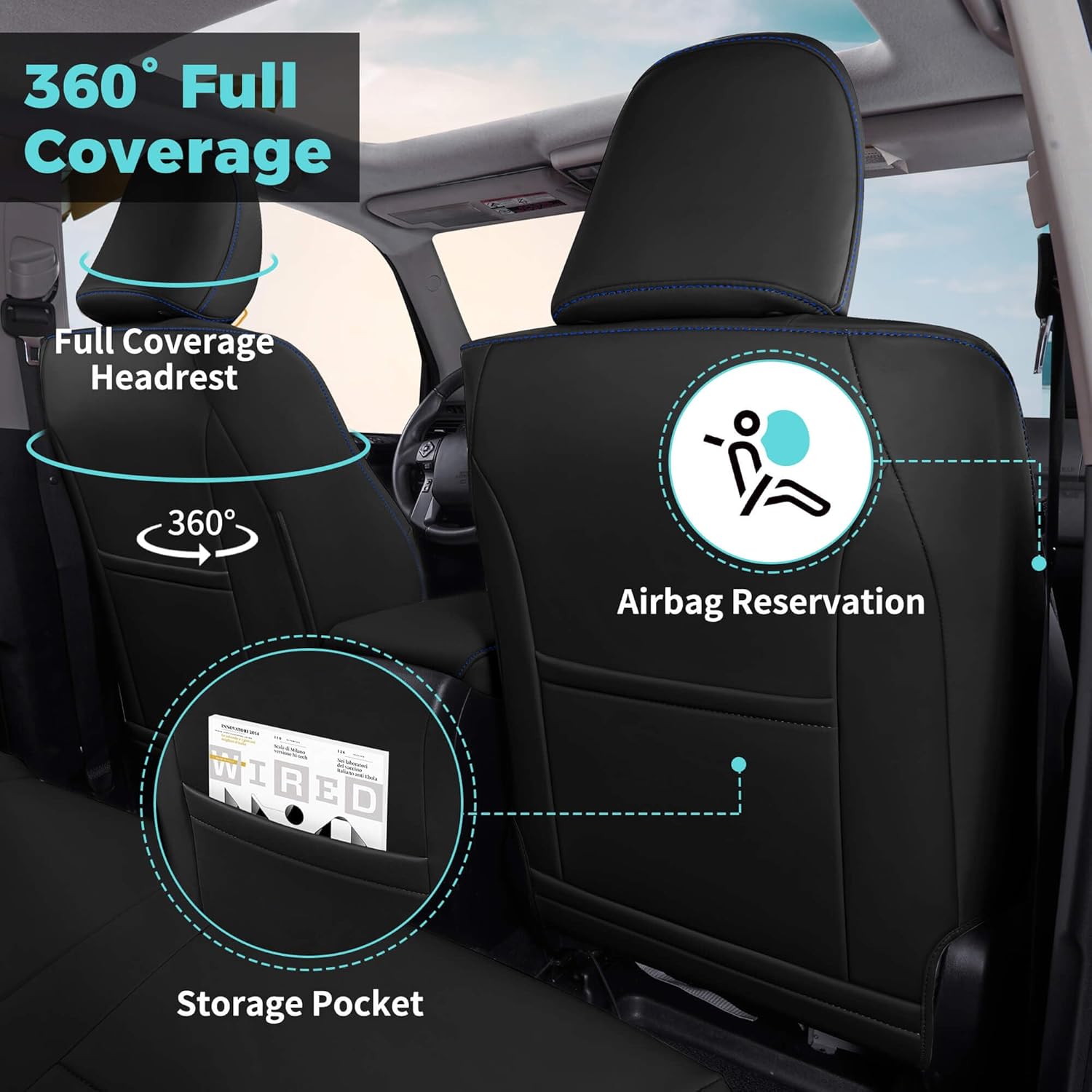 Seat Covers for Toyota 4Runner 2011-2024, Faux Leather Car Seat Cover Full Set, 2-Row-Only for 5 Seats Version-BlackBlue