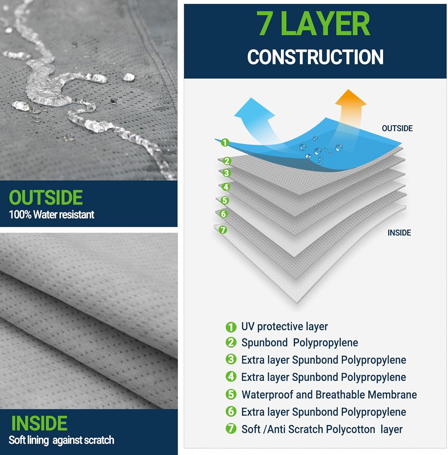 - All Weather Protection and Breathable: 135g non-woven breathable fabric materials, wear-resistant and tear-resistant, protect your car for all weather. It will defense against dirt, tree sap and birds droppings. Highly waterproof UV resistant layer protects the car cover from fading, extends service life