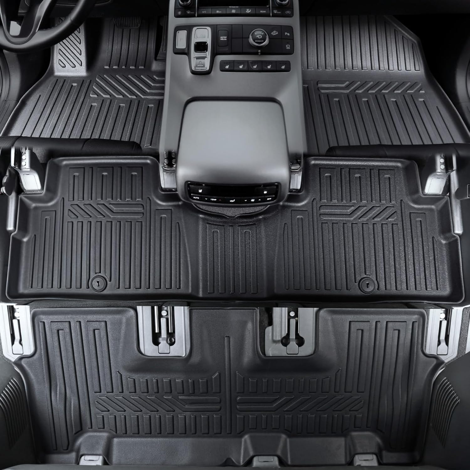 - Upgraded Design: Cargo mat with 2 and 1 design allows you to adjust the seat easily; extended floor mats covered the full isle way to the 3rd row