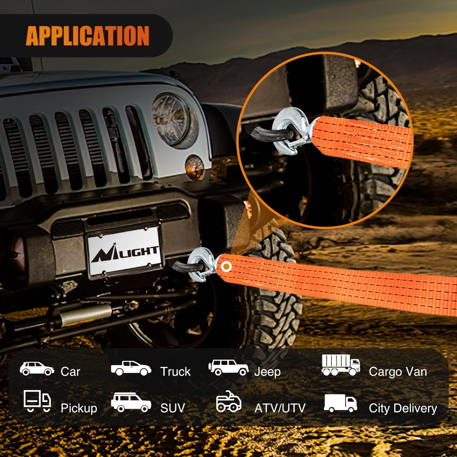 - 【Package Included】1PCS 2”x20’ Tow Strap Heavy Duty with Safety Hooks, 1PCS Storage Bag. The packaging is specially designed to avoid your package being damaged during transportation.2 Years Warranty Honored by Nilight.