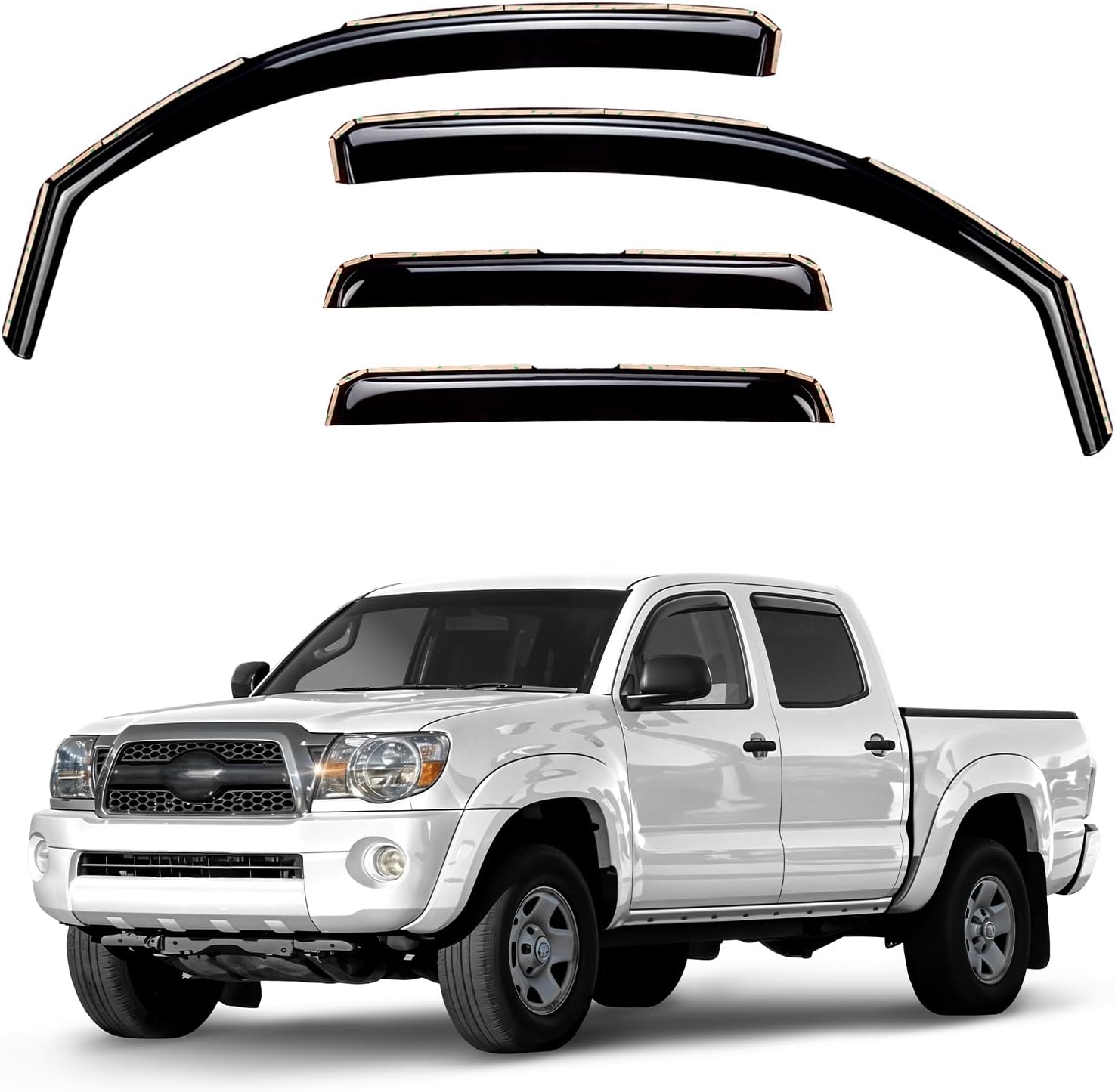 Window Deflectors Smoke Tinted In-Channel Side Window Vent Visor Deflectors Rain Guards Compatible with Tacoma 2005-2015 Double Cab - 4pcs. GW0731