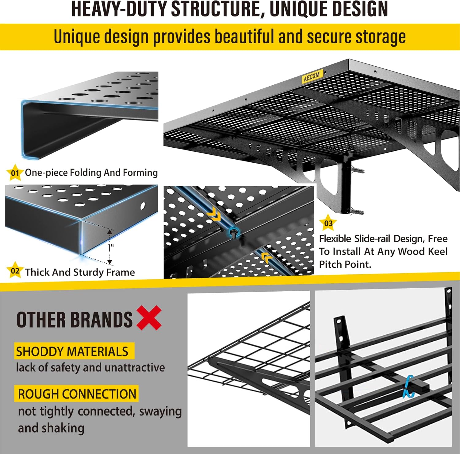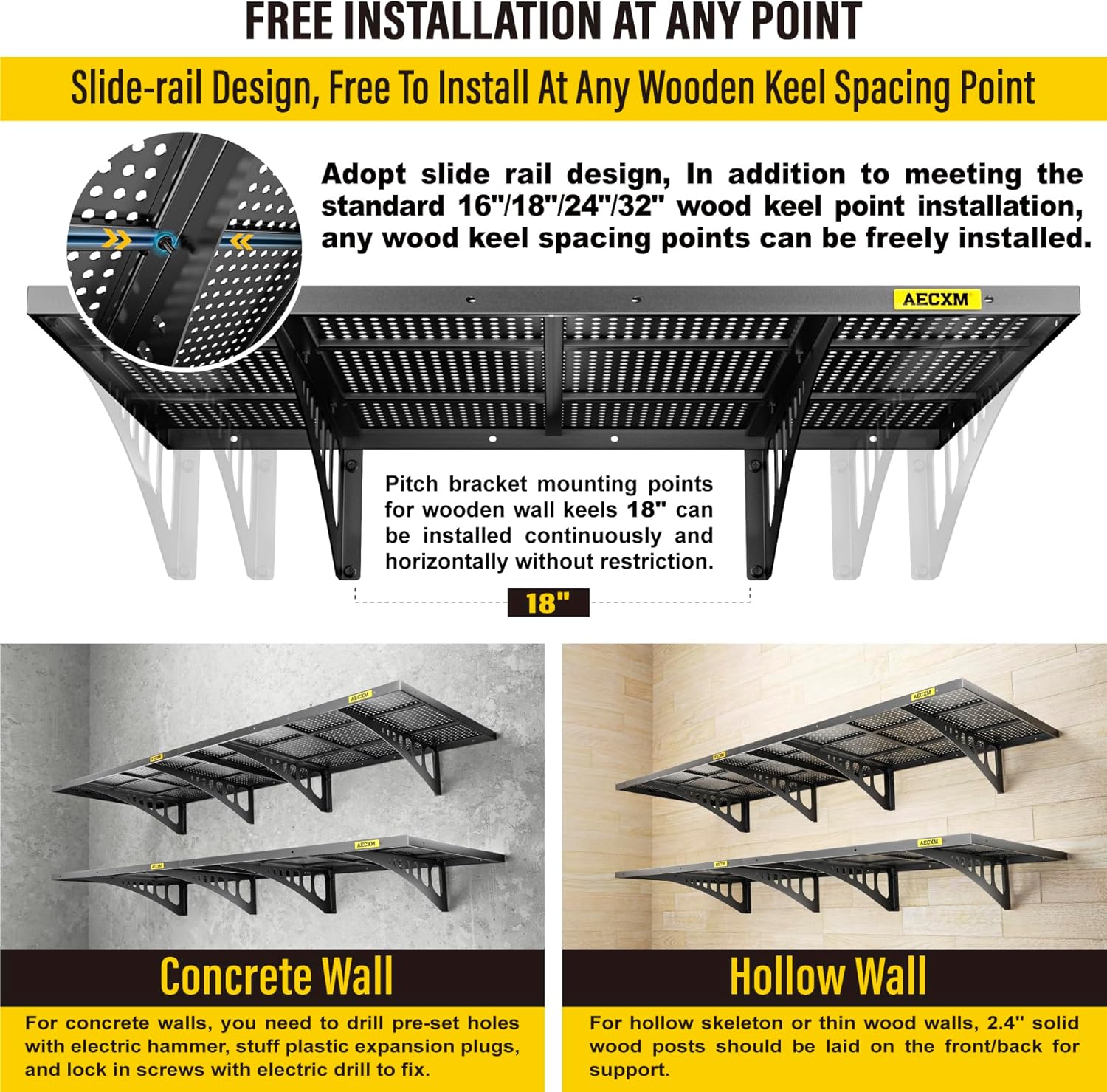 - Innovative Design: Unlike fixed wood stud spacing systems, Aecxm garage wall shelving feature an exclusive sliding rail screw design, allowing flexible installation on any wood stud spacing within the panel's length. Adjust freely and hassle-free