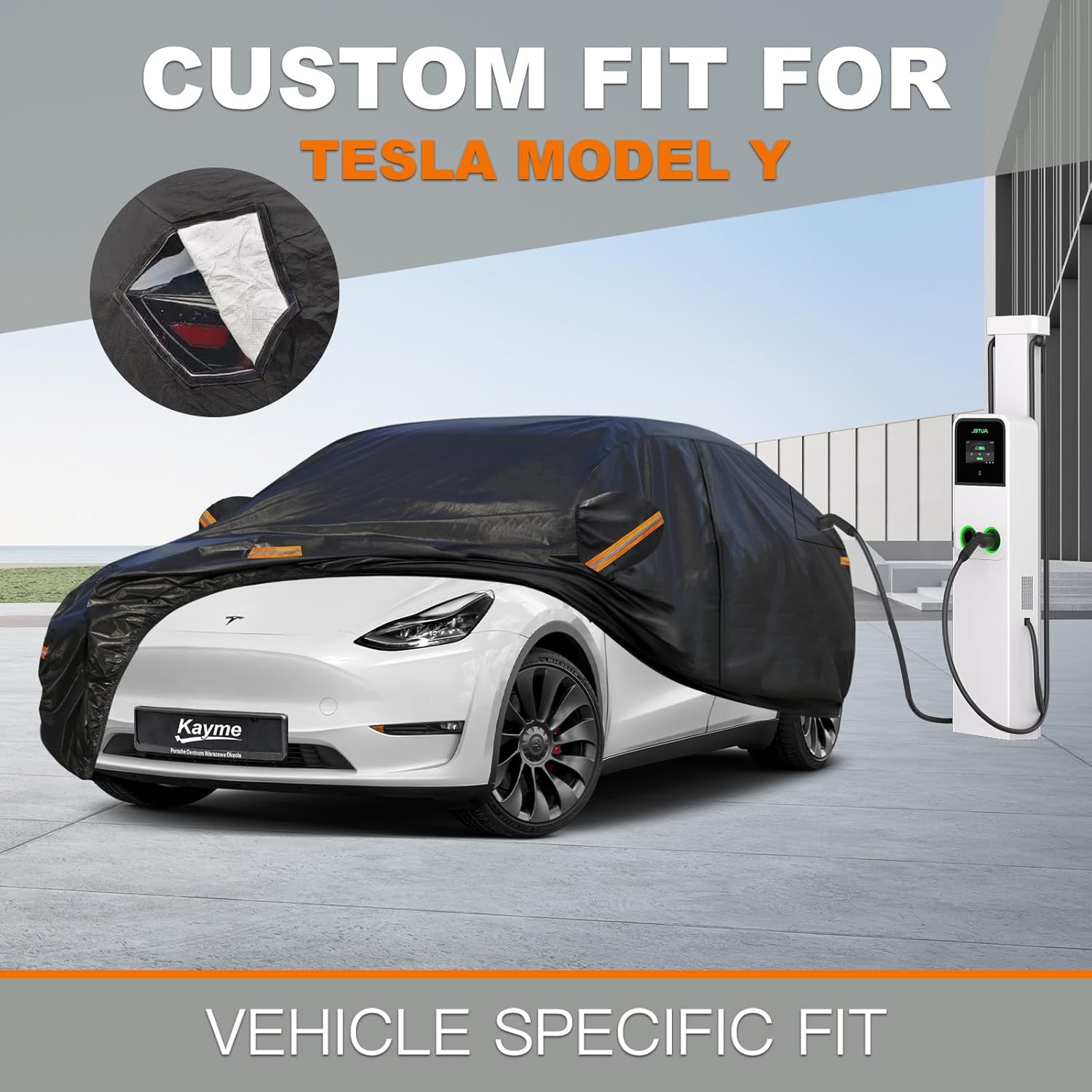 Kayme 7 Layers Car Cover Custom Fit for Tesla Model Y, Waterproof All Weather for Automobiles, Outdoor Full Car Cover Sun Rain UV Snow Protection.Black