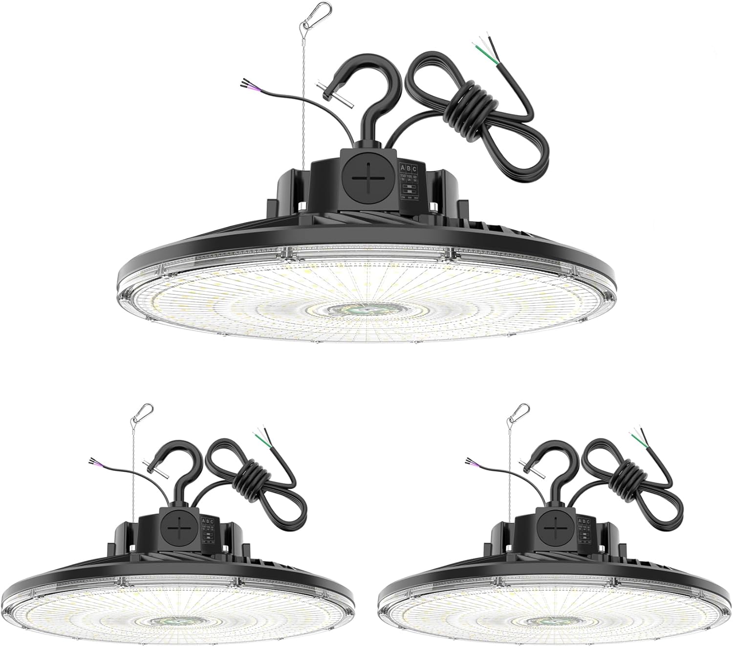 3 Pack 480V LED High Bay Light UL DLC Listed UFO Light 300W 240W 200W Adjustable, Dimmable High Bay LED Shop Lights 5000K Daylight, IP65 Commercial Bay Lighting for Warehouse Factory