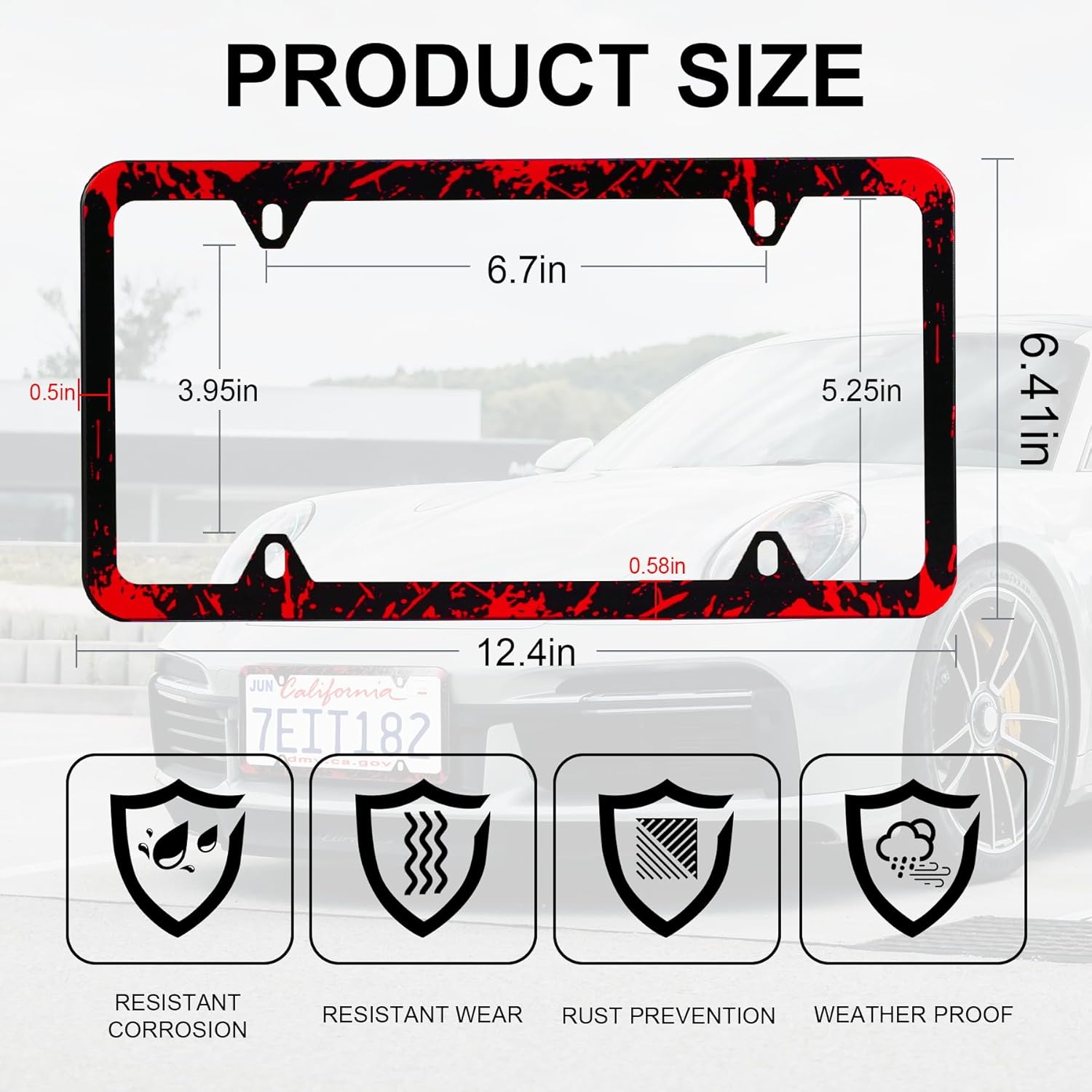 - 【Universal Fit】Measuring 12.4 inches x 6.41 inches with an inner size of 11.4 inches x 5.25 inches, these frames fit most standard US license plates. Four pre-drilled holes ensure compatibility with various vehicle models without the need for modifications. Note: Some cars have only 2 holes, so please check your vehicle before ordering.