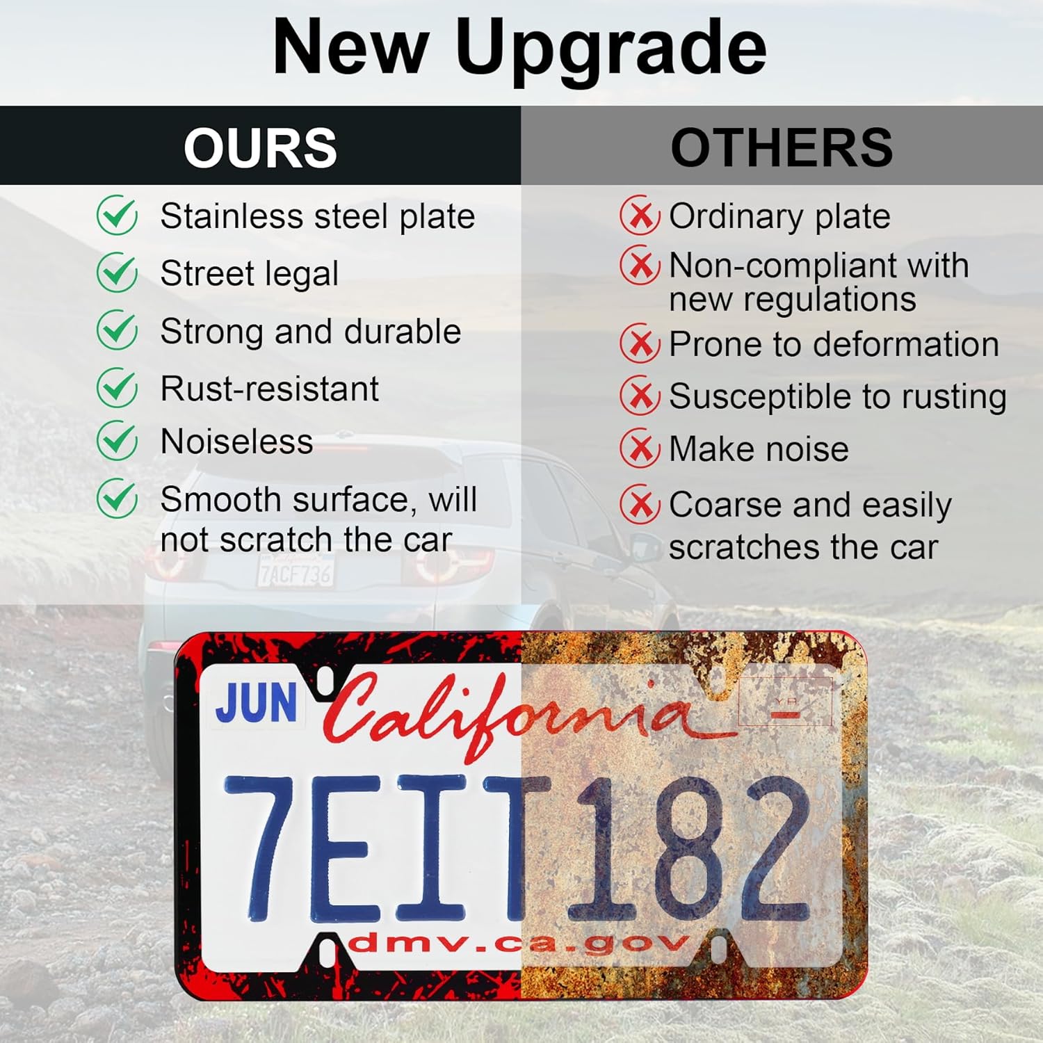 - 【Sleek and Stylish Design】The slim black design offers a clean, modern look that complements any vehicle exterior without blocking registration tags. The painted finish enhances texture, while the polished smooth edges are safe for both your car and your hands.