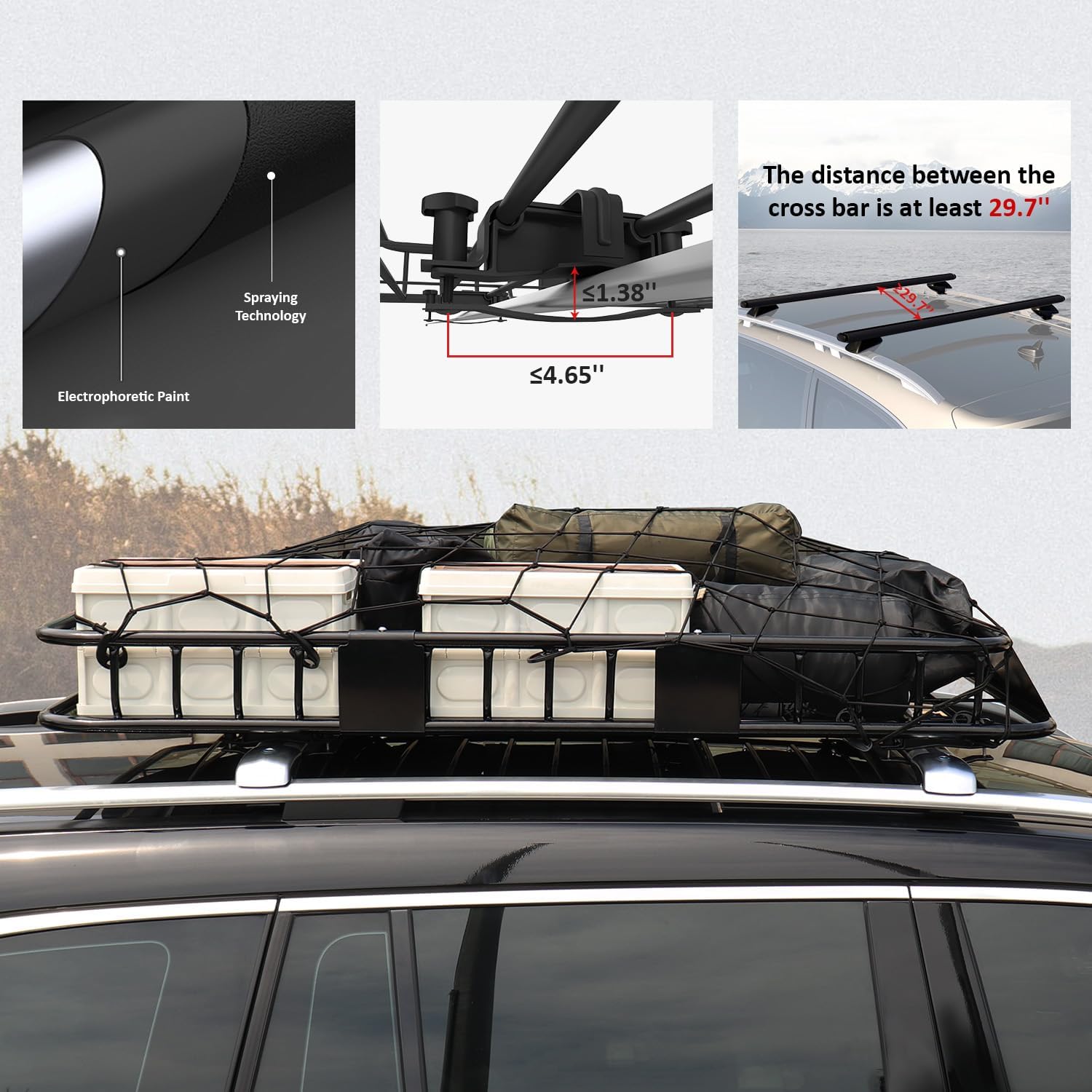 FORWODE Roof Rack Carrier Basket, 64" x 39" x 6" Rooftop Cargo Carrier with 250 lbs Capacity, Rust-Proof Steel Heavy Duty Car Top Luggage Basket with Waterproof Cargo Bag, Net and Straps