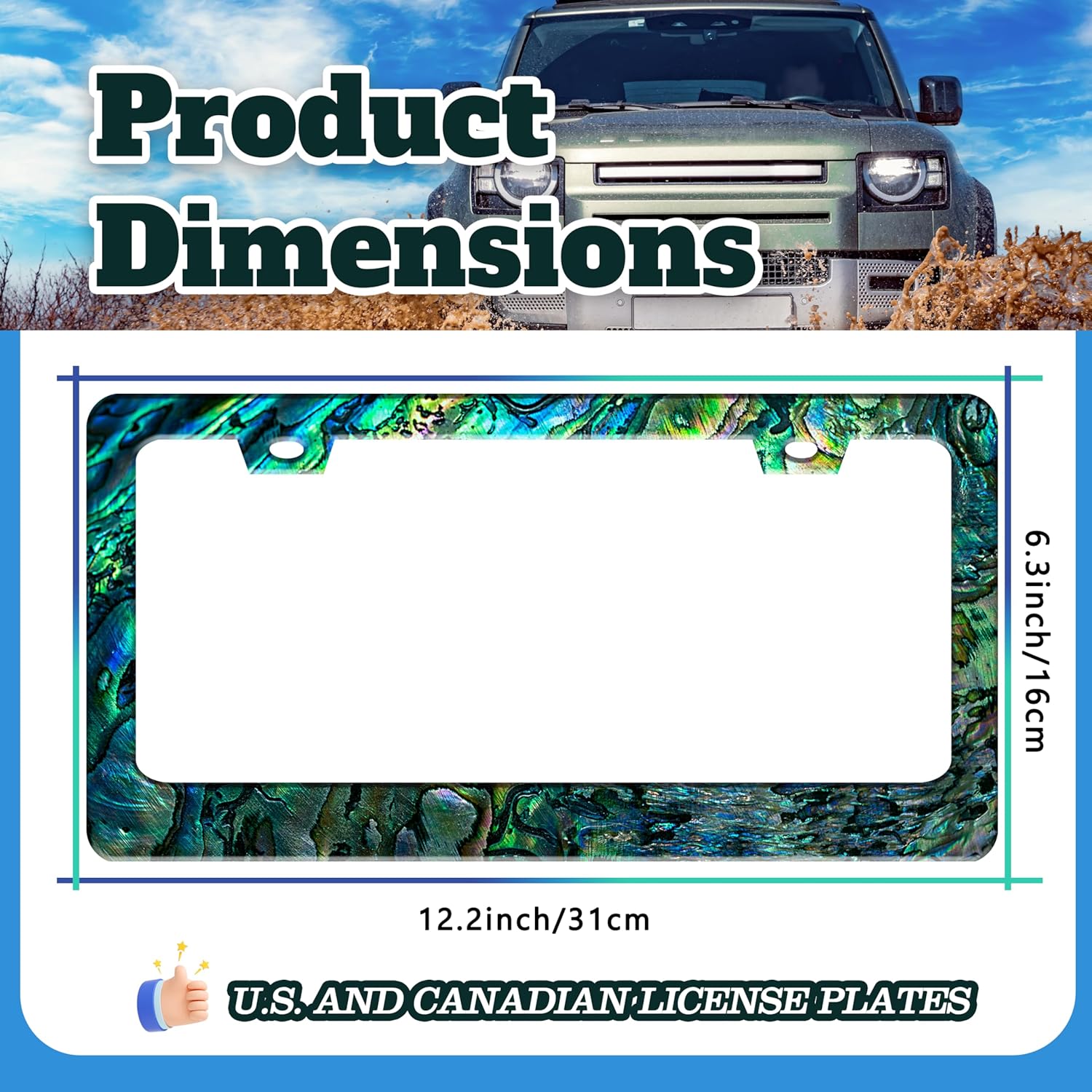 Faux Abalone License Plate Frame Funny Stainless Steel License Plate Holder for Front or Rear Car Tags for Car Decoration Accessories Rust-Proof with Screws 6.3 X 12.2 in for Women Men
