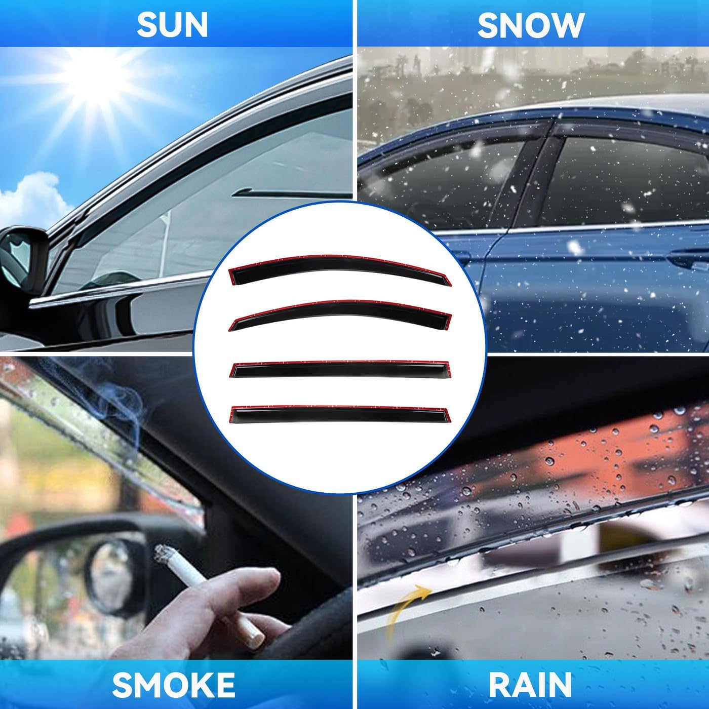 - Package Included: 4pcs front + rear vent window visors (3M Tape Included)