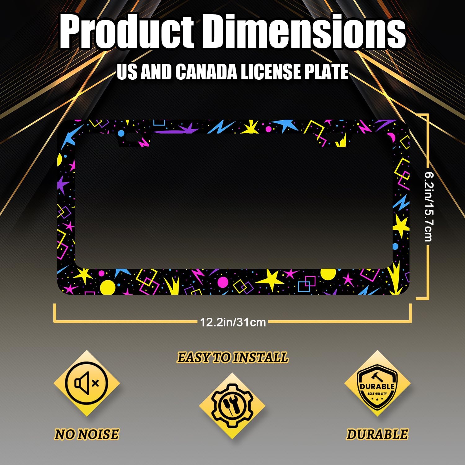 Psychedelic Stars License Plate Frame Colorful Galaxy License Plate Holder Stainless Steel Front and Rear Car Tags Auto Parts Funny License Plate Decoration with Screws for Men Women 12.2"x 6.2"