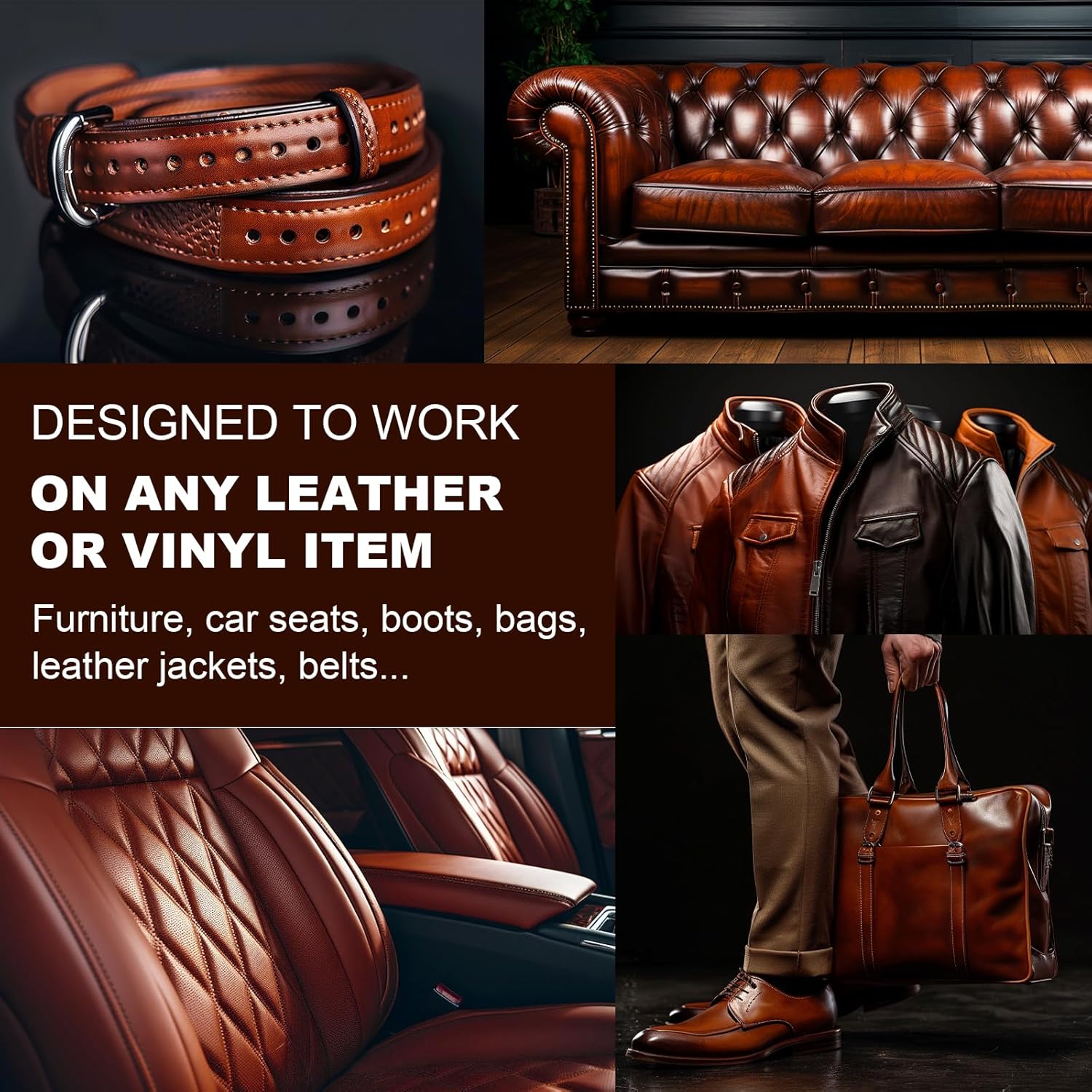 - Vinyl repair kit - SHABEIBEI leather recoloring cleaners are not just meant for leather items. Our dark brown leather repair cream does a fine job in safeguarding and restoring your vinyl items. You can now have cleaner and blemish-free leather seats and furniture without worrying about the scratches or cracks they might accumulate.