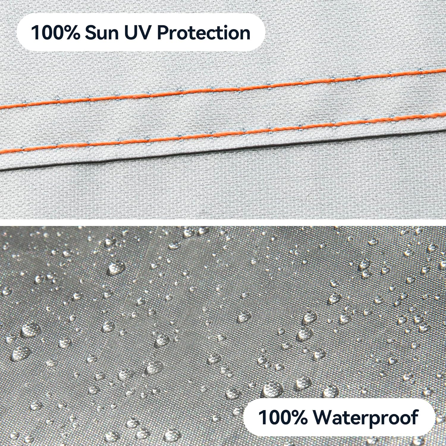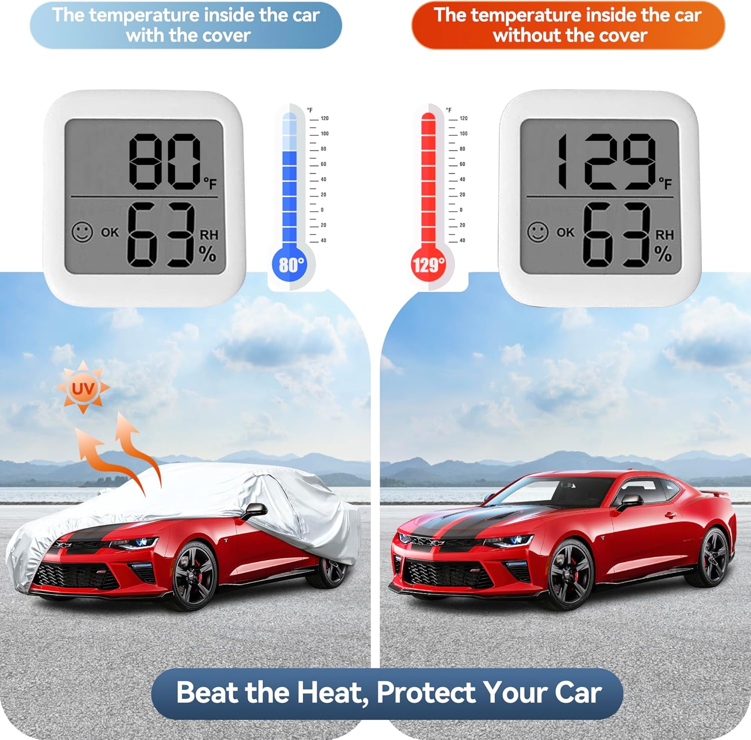 - 【Premium Material】Our car cover waterproof all weather is made of 7-layer material.Layer 1-2 consist of anti-UV material that help to reflect 99% of UV rays.Layers 3 is silver coating,has better sun protection than black.Layer 4 and 7 is waterproof PEVA,providing 100% waterproofing.Layer 5 is high density 210D oxford woven fabric,resistant to tears and abrasions.Layer 6 has breathable material,allowing air circulation to prevent condensation formation,preserving the car's finish.