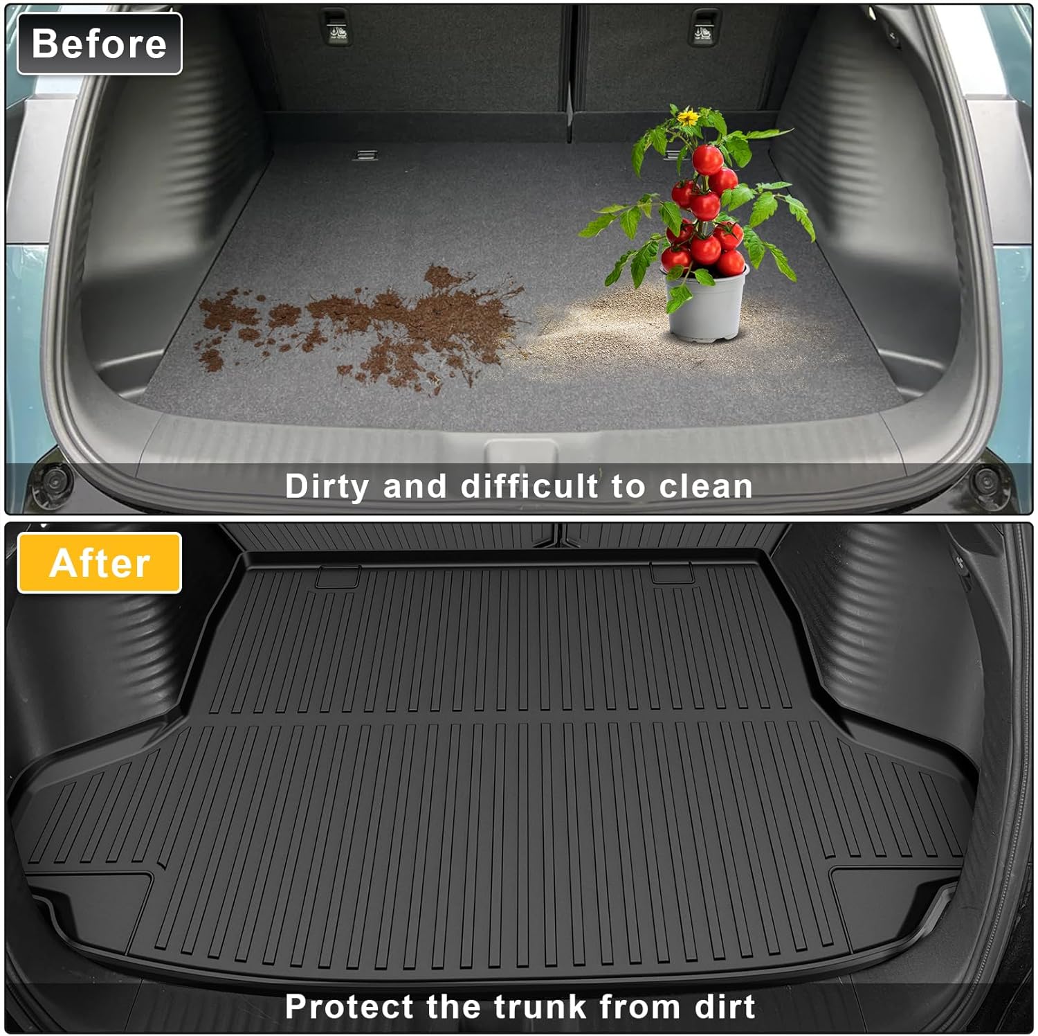 - 【Easy to Install and Clean】 The custom HRV HR-V Touring trunk mats with back seat cover set are no professional installation required, all installations can be done by one person at home. Easy to install and remove. Multiple tests prove that it won't crack, curl or break down. simply rinse and wipe with clean water to refresh the car's custom floor mats.