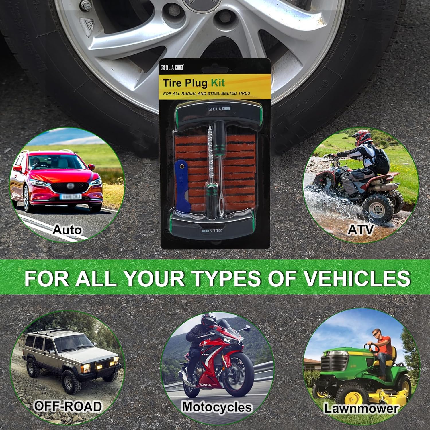 - 【Self-Vulcanizing Tire Plugs】 - Includes 10 premium self-vulcanizing plugs, ensuring a secure and reliable seal for most small punctures on tubeless tires.