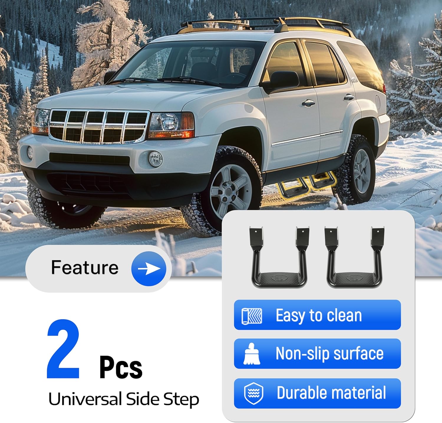 - Easy Installation: 2 Pcs X Side Steps (Black) . The package contains the necessary installation accessories as well as instructions. Takes the design of simple screw mounting. Please note that drilling is required before installation.